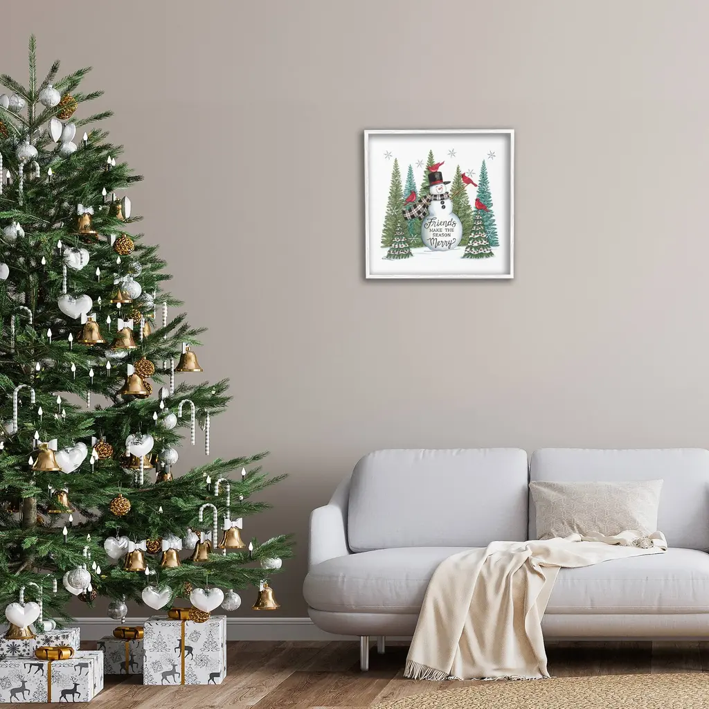 Add dimension to any room with our textured Framed Giclee Artwork. Our framed artwork is securely mounted into a 1.5-inch thick wood grain frame and ready to hang. Frames are available in three alluring styles: black, gray farmhouse and white. In addition, you should check out our oversized options if you want a statement piece. Stupell Wall Art is made in the USA.Features: Dimensions: 12 x 1.5 x 12 FramedFramed Giclee Product Sizes Include 12"x12", 17"x17", and 24"x24". Framed Giclee Products have a 1.5" Depth. Wall Art is Ready to Hang with Hardware Free Hanging. No installation required. For Easy Set Up Lean or Layer Artwork on Shelf or Against Wall.Our giclée prints are carefully mounted on a durable MDF backing, and then perfectly finished in a 1.5 inch thick woodgrain frame. Mounted frame colors include black, gray farmhouse and white. Made In USA.Artwork Relates To: Nature, Winter, Snow, Snowman, Animal, Bird, Christmas, Tree, Snowflake, Friends Make the Season MerryDesign by Deb Strain