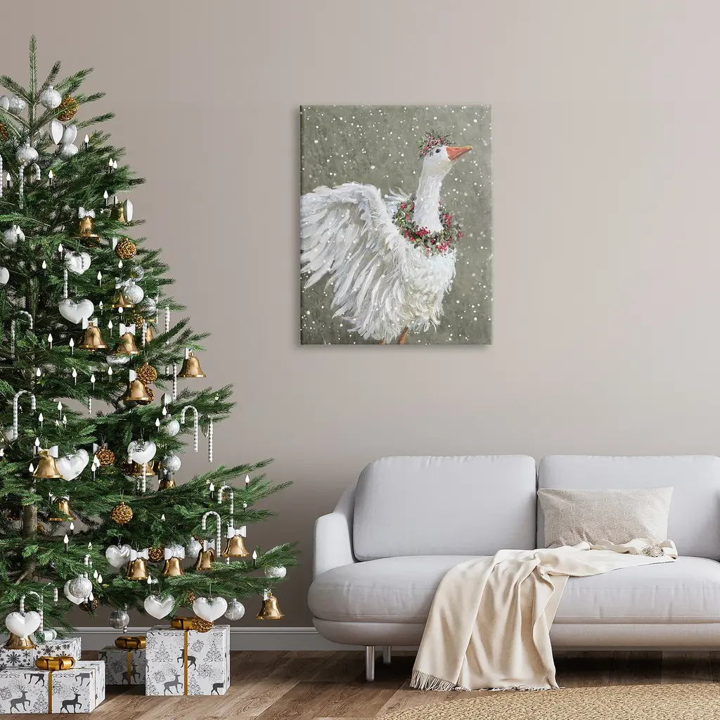 We create our stretched canvas to the highest standards. Using only the highest quality inks and canvas on Mimaki printers, we hand-cut and stretch each piece over a 1.5-inch thick wooden frame for hanging. As a result, the art comes ready to hang on the sturdy ledge with no installation required. Stupell Wall Art is made in the USA.Features: Dimensions: 16 x 1.5 x 20 InchesStretched Canvas Sizes Include Standard: 16 x 1.5 x 20 Large: 20 x 1.5 x 30 X-Large: 30 x 1.5 x 40 Oversized: 36 x 1.5 x 48Wall Art is Ready to Hang - No Installation or Hardware Needed. For Easy Set Up Lean or Layer Artwork on Shelf or Against Wall.Our stretched canvas is created with the highest standards. We use only the highest quality inks and canvas on our in house Mimaki printers, and then hand cut and stretch each piece over a 1.5 inch thick wooden frame for hanging. Made In USA.Artwork Relates To: Animal, Mammal, Flower, Holly Berry, Botanical, Christmas, Snow, Bird, Goose, SwanDesign by Pip Wilson