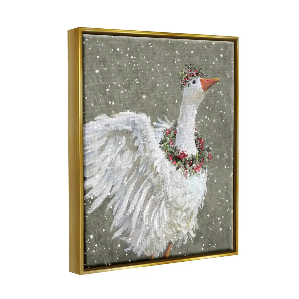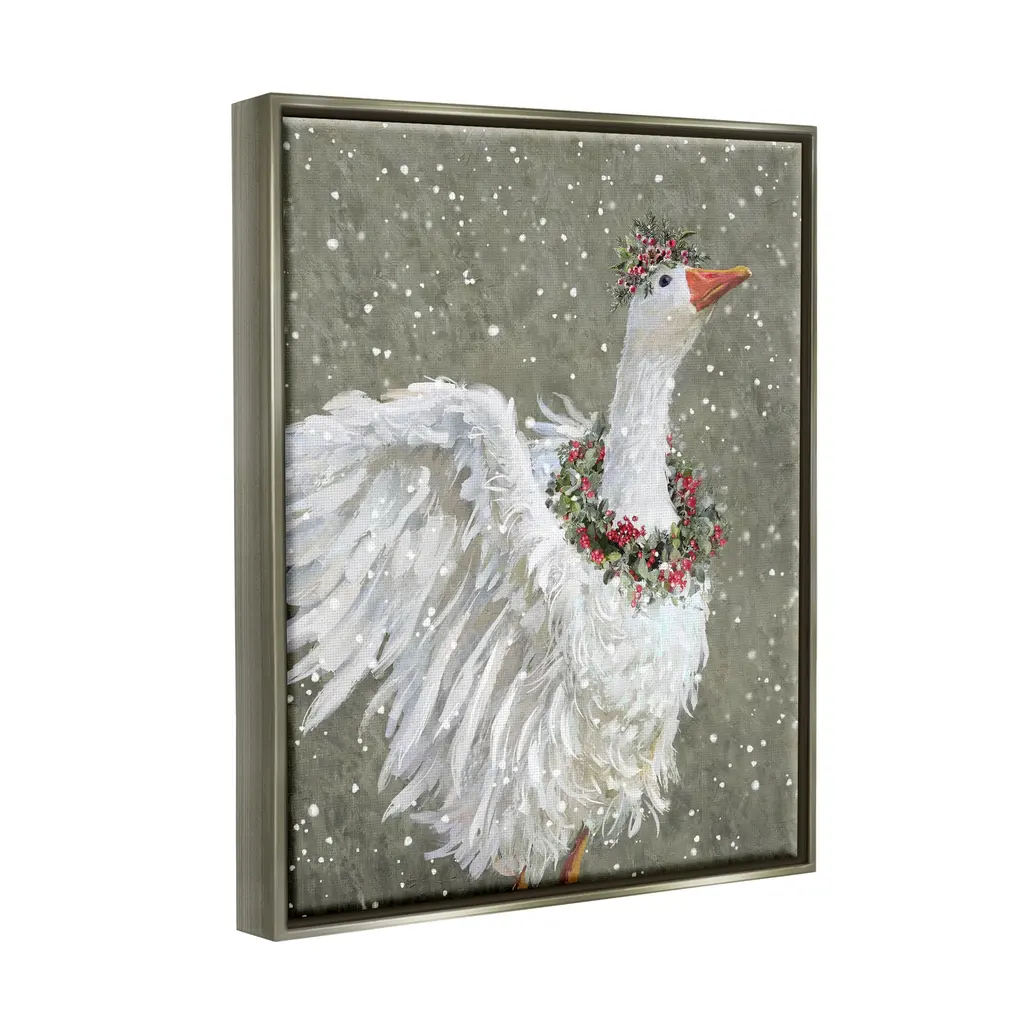 Elevate your home or office to the next level with Stupell Framed Floating Canvas Wall Art. Our premium hand-stretched canvas is mounted securely into a sturdy lightweight frame. The museum-style gap between the wrapped canvas and the box frame gives the illusion of floating artwork. Stupell Wall Art is made in the USA.Features: Dimensions: 17 x 1.7 x 21 Frame, 16 x 1.5 x 20 Canvas ArtFloating Frame Sizes Include Standard: 17 x 1.7 x 21 Oversized: 25 x 1.7 x 31Wall Art is Ready to Hang - No Installation or Hardware Needed. For Easy Set Up Lean or Layer Artwork on Shelf or Against Wall.Our elevated 1.7" Thick Floating Frame is the perfect complement to our canvas style Wall Art. We use only the highest quality inks in house with industry leading printing solutions. Canvas is hand stretched over a durable wood foundation and then mounted securly into a Modern Box Frame. Made in the USA.Artwork Relates To: Animal, Mammal, Flower, Holly Berry, Botanical, Christmas, Snow, Bird, Goose, SwanDesign by Pip Wilson