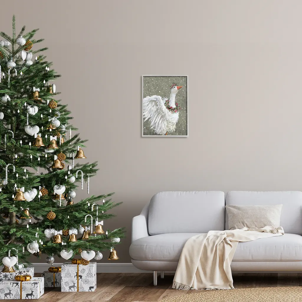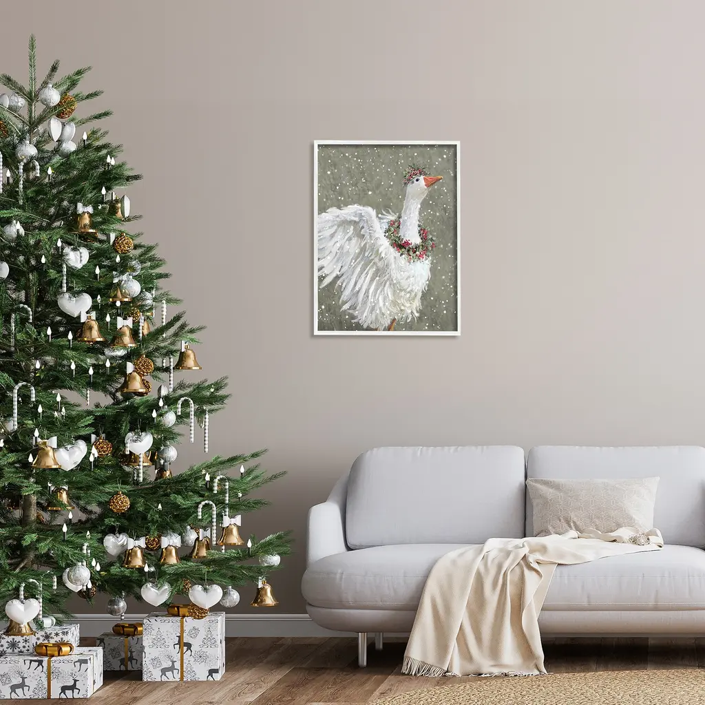 Add dimension to any room with our textured Framed Giclee Artwork. Our framed artwork is securely mounted into a 1.5-inch thick wood grain frame and ready to hang. Frames are available in three alluring styles: black, gray farmhouse and white. In addition, you should check out our oversized options if you want a statement piece. Stupell Wall Art is made in the USA.Features: Dimensions: 11 x 1.5 x 14 FramedFramed Giclee Sizes Include Standard: 11 x 1.5 x 14 Large: 16 x 1.5 x 20 Oversized: 24 x 1.5 x 30Wall Art is Ready to Hang - No Installation or Hardware Needed. For Easy Set Up Lean or Layer Artwork on Shelf or Against Wall.Our giclée prints are carefully mounted on a durable MDF backing, and then perfectly finished in a 1.5 inch thick woodgrain frame. Mounted frame colors include black, gray farmhouse and white. Made In USA.Artwork Relates To: Animal, Mammal, Flower, Holly Berry, Botanical, Christmas, Snow, Bird, Goose, SwanDesign by Pip Wilson