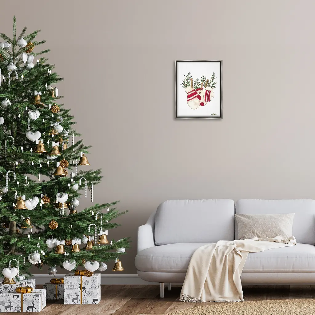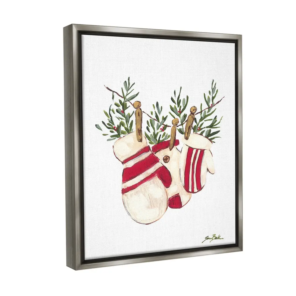 Elevate your home or office to the next level with Stupell Framed Floating Canvas Wall Art. Our premium hand-stretched canvas is mounted securely into a sturdy lightweight frame. The museum-style gap between the wrapped canvas and the box frame gives the illusion of floating artwork. Stupell Wall Art is made in the USA.Features: Dimensions: 17 x 1.7 x 21 Frame, 16 x 1.5 x 20 Canvas ArtFloating Frame Canvas Products are available in sizes 17"x21" and 25"x31". All Floating Frame Canvas Products have a 1.7" Depth.Wall Art is Ready to Hang with Hardware Free Hanging. No Installation required. For Easy Set Up Lean or Layer Artwork on Shelf or Against Wall. Artwork is Permently Fixed into the Frame.Our elevated 1.7" Thick Floating Frame is the perfect complement to our canvas style Wall Art. We use only the highest quality inks in house with industry leading printing solutions. Canvas is hand stretched over a durable wood foundation and then mounted securly into a Modern Box Frame. Made in the USA.Artwork Relates To: Christmas, Winter, Botanical, Mittens, Holly, Clothespin, Minimal, TraditionalDesign by Sara Baker