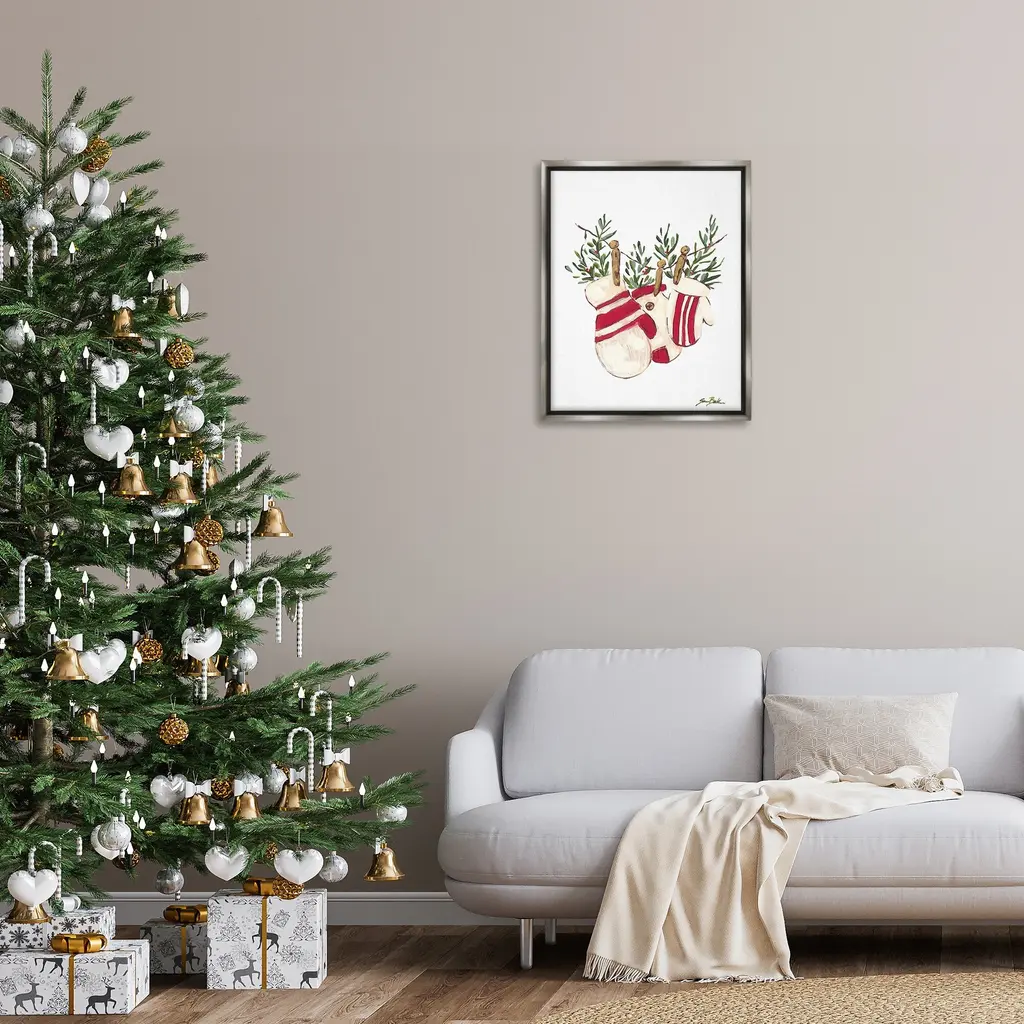 Elevate your home or office to the next level with Stupell Framed Floating Canvas Wall Art. Our premium hand-stretched canvas is mounted securely into a sturdy lightweight frame. The museum-style gap between the wrapped canvas and the box frame gives the illusion of floating artwork. Stupell Wall Art is made in the USA.Features: Dimensions: 17 x 1.7 x 21 Frame, 16 x 1.5 x 20 Canvas ArtFloating Frame Canvas Products are available in sizes 17"x21" and 25"x31". All Floating Frame Canvas Products have a 1.7" Depth.Wall Art is Ready to Hang with Hardware Free Hanging. No Installation required. For Easy Set Up Lean or Layer Artwork on Shelf or Against Wall. Artwork is Permently Fixed into the Frame.Our elevated 1.7" Thick Floating Frame is the perfect complement to our canvas style Wall Art. We use only the highest quality inks in house with industry leading printing solutions. Canvas is hand stretched over a durable wood foundation and then mounted securly into a Modern Box Frame. Made in the USA.Artwork Relates To: Christmas, Winter, Botanical, Mittens, Holly, Clothespin, Minimal, TraditionalDesign by Sara Baker