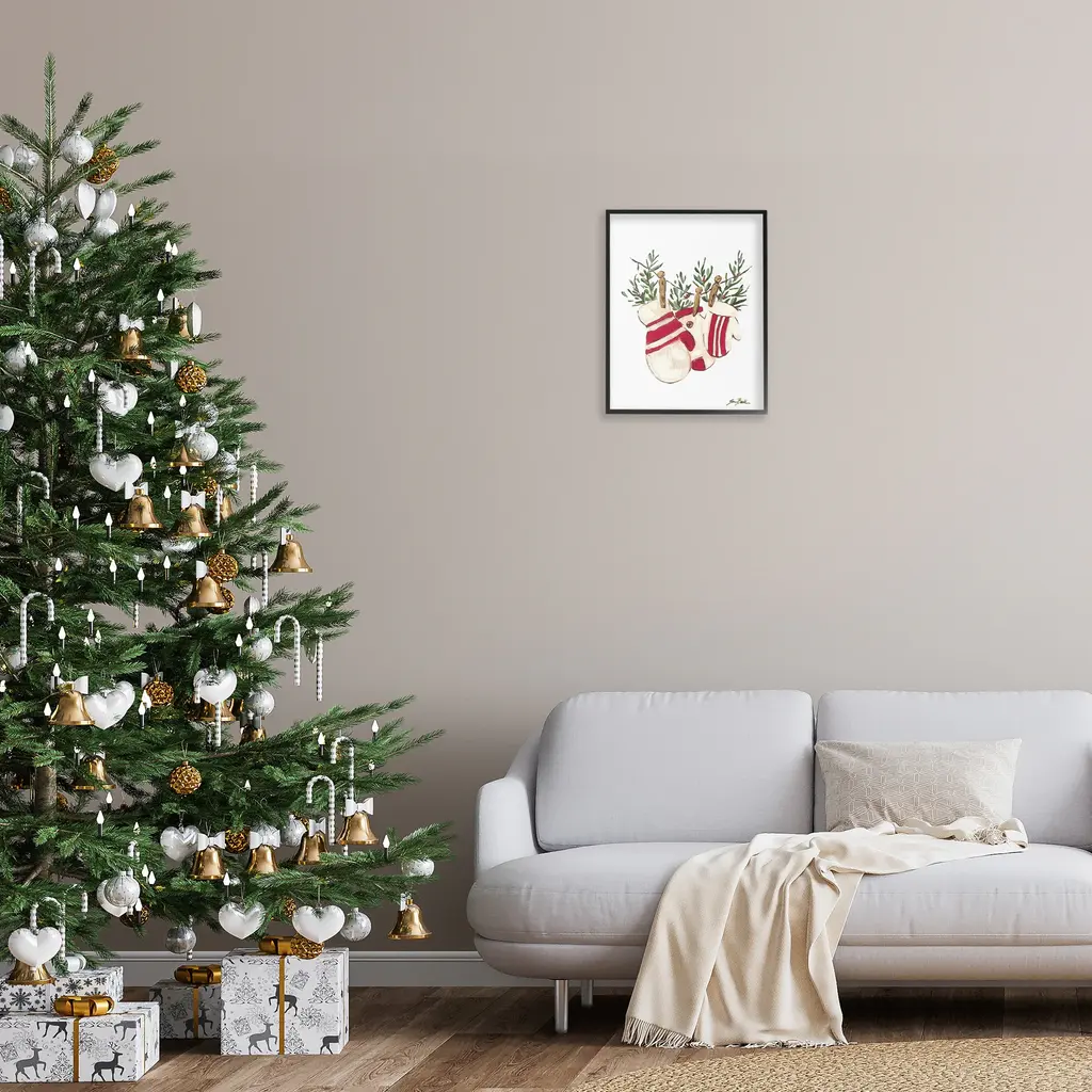 Add dimension to any room with our textured Framed Giclee Artwork. Our framed artwork is securely mounted into a 1.5-inch thick wood grain frame and ready to hang. Frames are available in three alluring styles: black, gray farmhouse and white. In addition, you should check out our oversized options if you want a statement piece. Stupell Wall Art is made in the USA.Features: Dimensions: 11 x 1.5 x 14 FramedFramed Giclee Products are available in the sizes 11"x14", 16"x20" or 24"x30". All Framed Giclee Products have a 1.5" Depth. Wall Art is Ready to Hang with Hardware Free Hanging. No installation required. For Easy Set Up Lean or Layer Artwork on Shelf or Against Wall.Our giclée prints are carefully mounted on a durable MDF backing, and then perfectly finished in a 1.5 inch thick woodgrain frame. Mounted frame colors include black, gray farmhouse and white. Made In USA.Artwork Relates To: Christmas, Winter, Botanical, Mittens, Holly, Clothespin, Minimal, TraditionalDesign by Sara Baker