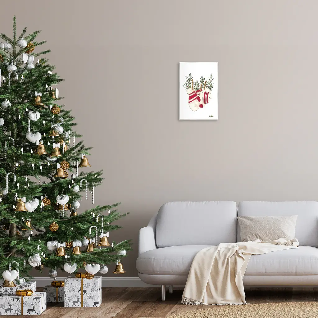 Our wall plaques start as high-quality lithograph prints mounted on durable 0.5-inch thick MDF wood. Each piece is hand finished and comes with a fresh layer of white foil on the sides to give it a crisp, clean look. Plaques arrive ready to hang without installation and come with removable plastic corners to keep them from damage in transit. Stupell Wall Art is made in the USA.Features: Dimensions: 10 x 0.5 x 15 InchesWall Plaque Product Sizes Include 10"x15" and 13"x19". All wall plaque products have a 0.5" Depth. Wall Art is Ready to Hang with Hardware Free Hanging. No installation required. For Easy Set Up Lean or Layer Artwork on Shelf or Against Wall.All of our wall plaques start off as high quality lithograph prints that are then mounted on durable 0.5 inch thick MDF wood. Each piece is hand finished and comes with a fresh layer of foil on the sides to give it a crisp clean look. Made In USA.Artwork Relates To: Christmas, Winter, Botanical, Mittens, Holly, Clothespin, Minimal, TraditionalDesign by Sara Baker