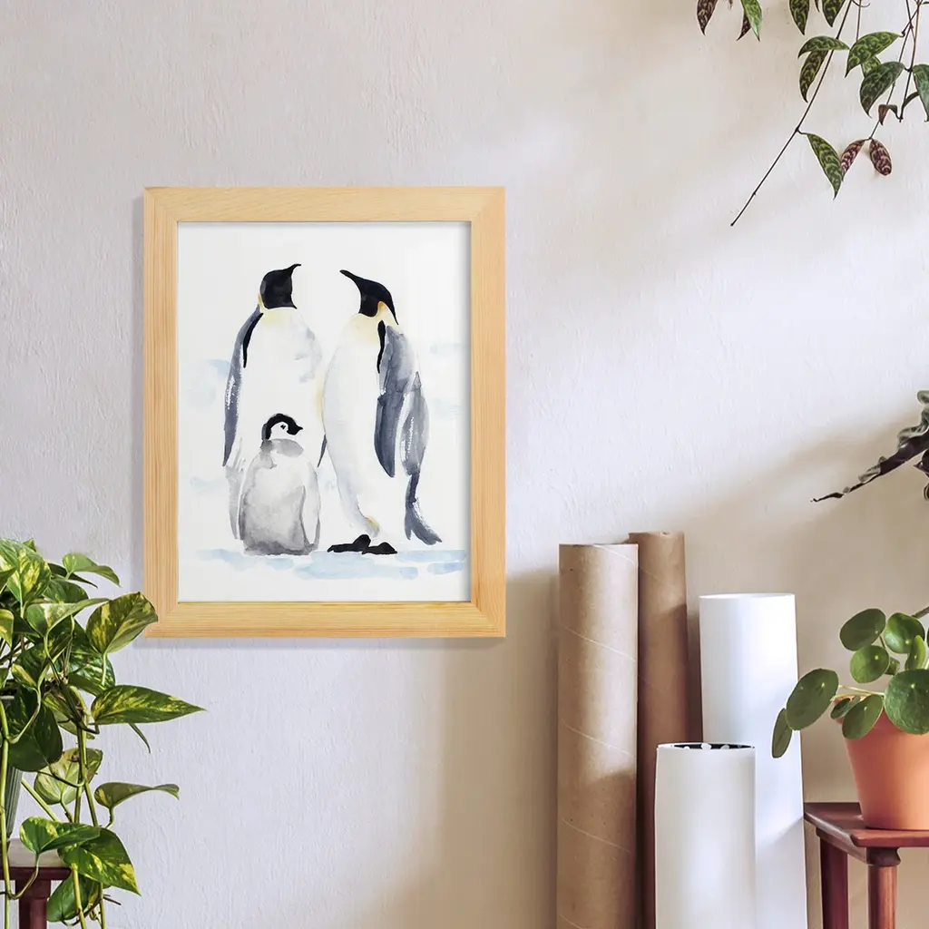 Stupell Winter Penguin Bird Family Soft Watercolor Arctic Animals Framed Wall Art - Blue - 16 X 20 - Black