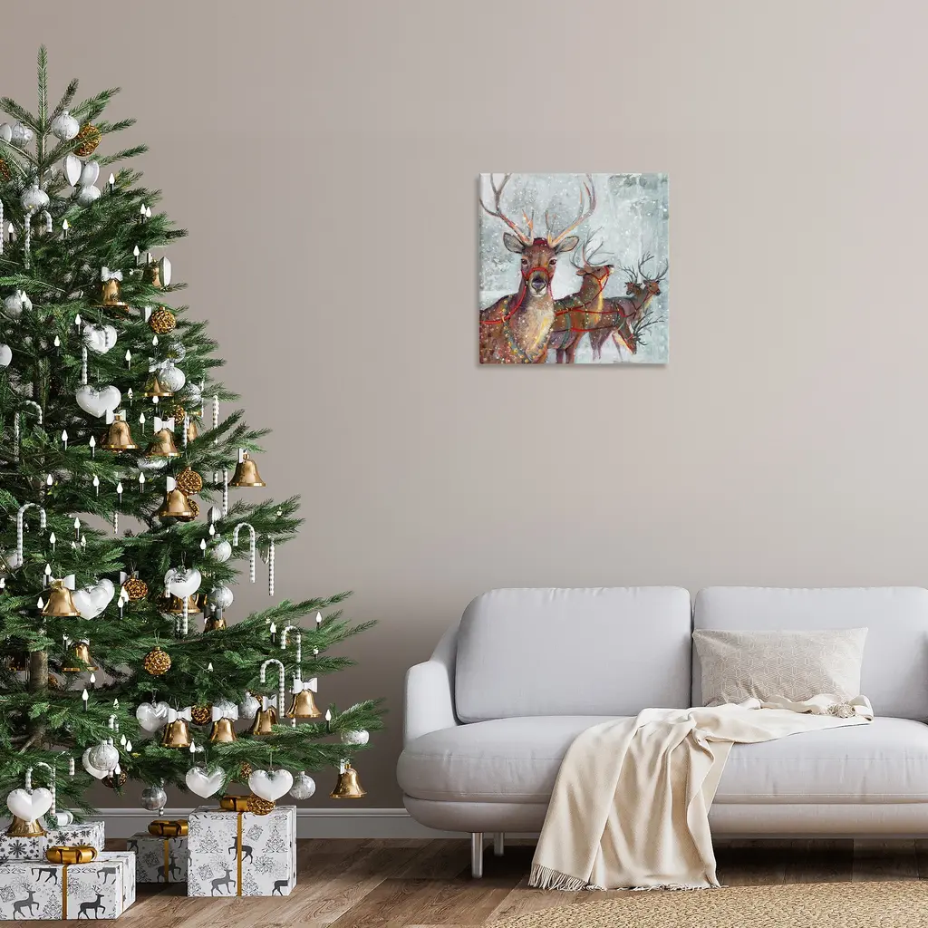 We create our stretched canvas to the highest standards. Using only the highest quality inks and canvas on Mimaki printers, we hand-cut and stretch each piece over a 1.5-inch thick wooden frame for hanging. As a result, the art comes ready to hang on the sturdy ledge with no installation required. Stupell Wall Art is made in the USA.Features: Dimensions: 17 x 1.5 x 17 InchesStretched Canvas Sizes Include Standard: 17 x 1.5 x 17 Large: 24 x 1.5 x 24 X-Large: 30 x 1.5 x 30 Oversized: 36 x 1.5 x 36Wall Art is Ready to Hang - No Installation or Hardware Needed. For Easy Set Up Lean or Layer Artwork on Shelf or Against Wall.Our stretched canvas is created with the highest standards. We use only the highest quality inks and canvas on our in house Mimaki printers, and then hand cut and stretch each piece over a 1.5 inch thick wooden frame for hanging. Made In USA.Artwork Relates To: Animal, Deer, Mammal, Wildlife, Painting, Nature, Snow, Winter, Holiday, ReindeerDesign by Ruane Manning