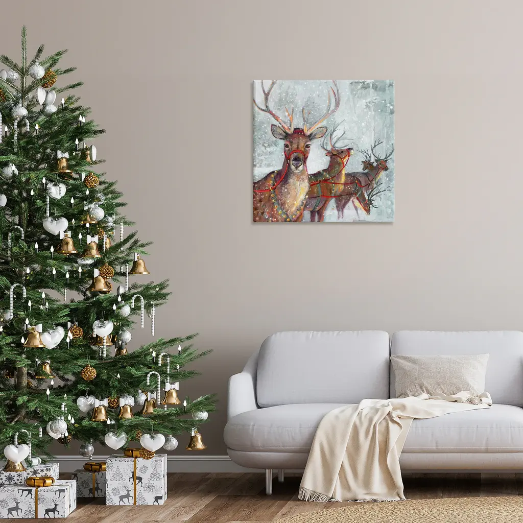 We create our stretched canvas to the highest standards. Using only the highest quality inks and canvas on Mimaki printers, we hand-cut and stretch each piece over a 1.5-inch thick wooden frame for hanging. As a result, the art comes ready to hang on the sturdy ledge with no installation required. Stupell Wall Art is made in the USA.Features: Dimensions: 17 x 1.5 x 17 InchesStretched Canvas Sizes Include Standard: 17 x 1.5 x 17 Large: 24 x 1.5 x 24 X-Large: 30 x 1.5 x 30 Oversized: 36 x 1.5 x 36Wall Art is Ready to Hang - No Installation or Hardware Needed. For Easy Set Up Lean or Layer Artwork on Shelf or Against Wall.Our stretched canvas is created with the highest standards. We use only the highest quality inks and canvas on our in house Mimaki printers, and then hand cut and stretch each piece over a 1.5 inch thick wooden frame for hanging. Made In USA.Artwork Relates To: Animal, Deer, Mammal, Wildlife, Painting, Nature, Snow, Winter, Holiday, ReindeerDesign by Ruane Manning