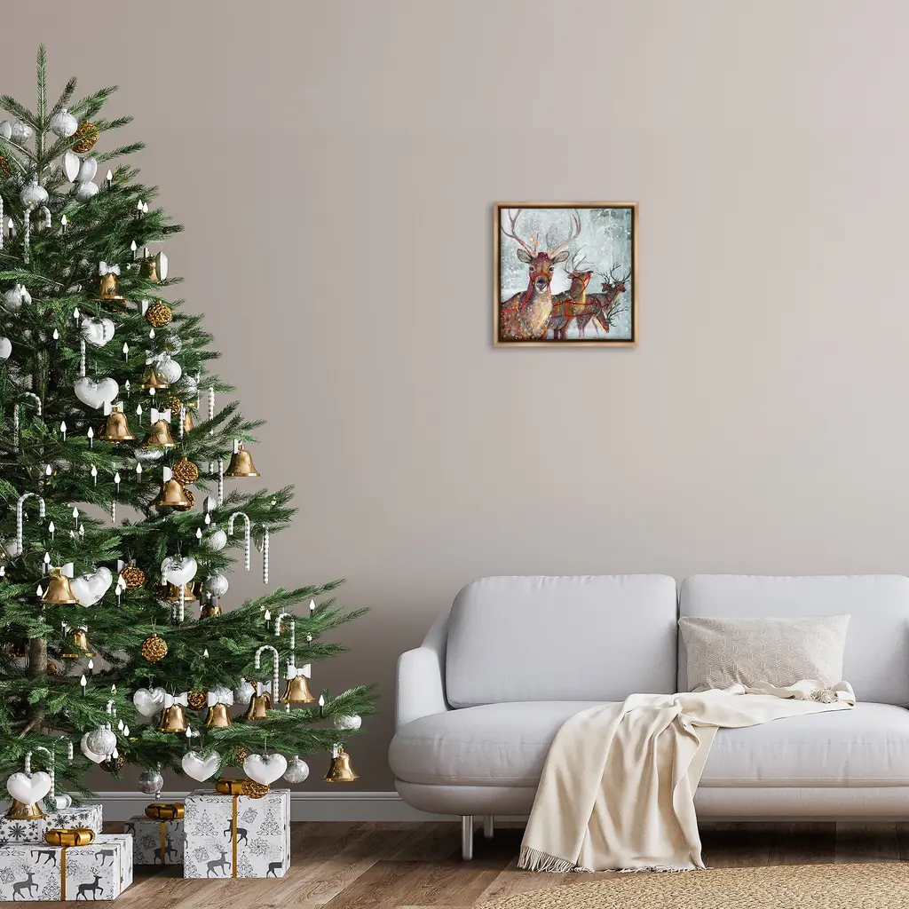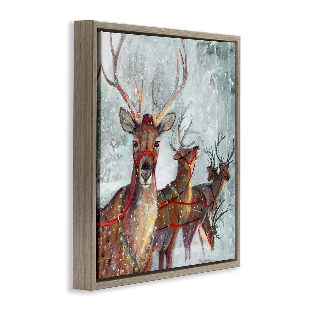Elevate your home or office to the next level with Stupell Framed Floating Canvas Wall Art. Our premium hand-stretched canvas is mounted securely into a sturdy lightweight frame. The museum-style gap between the wrapped canvas and the box frame gives the illusion of floating artwork. Stupell Wall Art is made in the USA.Features: Dimensions: 18 x 1.7 x 18 Frame, 17 x 1.5 x 17 Canvas ArtFloating Frame Canvas Products are available in sizes 18"x18" and 25"x25". All Floating Frame Canvas Products have a 1.7" Depth.Wall Art is Ready to Hang with Hardware Free Hanging. No Installation required. For Easy Set Up Lean or Layer Artwork on Shelf or Against Wall. Artwork is Permently Fixed into the Frame.Our elevated 1.7" Thick Floating Frame is the perfect complement to our canvas style Wall Art. We use only the highest quality inks in house with industry leading printing solutions. Canvas is hand stretched over a durable wood foundation and then mounted securly into a Modern Box Frame. Made in the USA.Artwork Relates To: Animal, Deer, Mammal, Wildlife, Painting, Nature, Snow, Winter, Holiday, ReindeerDesign by Ruane Manning