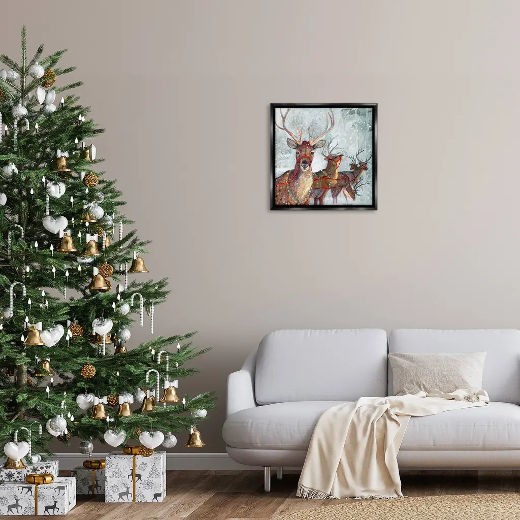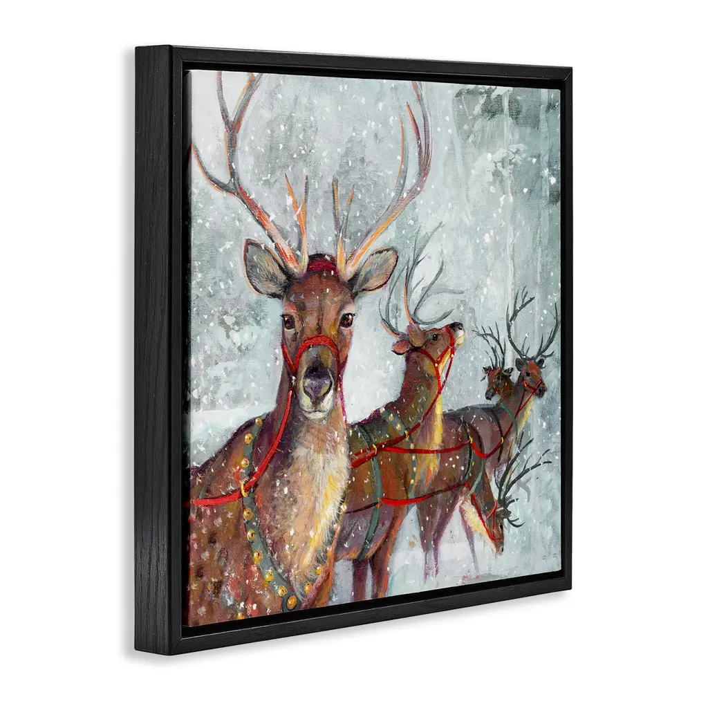 Elevate your home or office to the next level with Stupell Framed Floating Canvas Wall Art. Our premium hand-stretched canvas is mounted securely into a sturdy lightweight frame. The museum-style gap between the wrapped canvas and the box frame gives the illusion of floating artwork. Stupell Wall Art is made in the USA.Features: Dimensions: 18 x 1.7 x 18 Frame, 17 x 1.5 x 17 Canvas ArtFloating Frame Canvas Products are available in sizes 18"x18" and 25"x25". All Floating Frame Canvas Products have a 1.7" Depth.Wall Art is Ready to Hang with Hardware Free Hanging. No Installation required. For Easy Set Up Lean or Layer Artwork on Shelf or Against Wall. Artwork is Permently Fixed into the Frame.Our elevated 1.7" Thick Floating Frame is the perfect complement to our canvas style Wall Art. We use only the highest quality inks in house with industry leading printing solutions. Canvas is hand stretched over a durable wood foundation and then mounted securly into a Modern Box Frame. Made in the USA.Artwork Relates To: Animal, Deer, Mammal, Wildlife, Painting, Nature, Snow, Winter, Holiday, ReindeerDesign by Ruane Manning