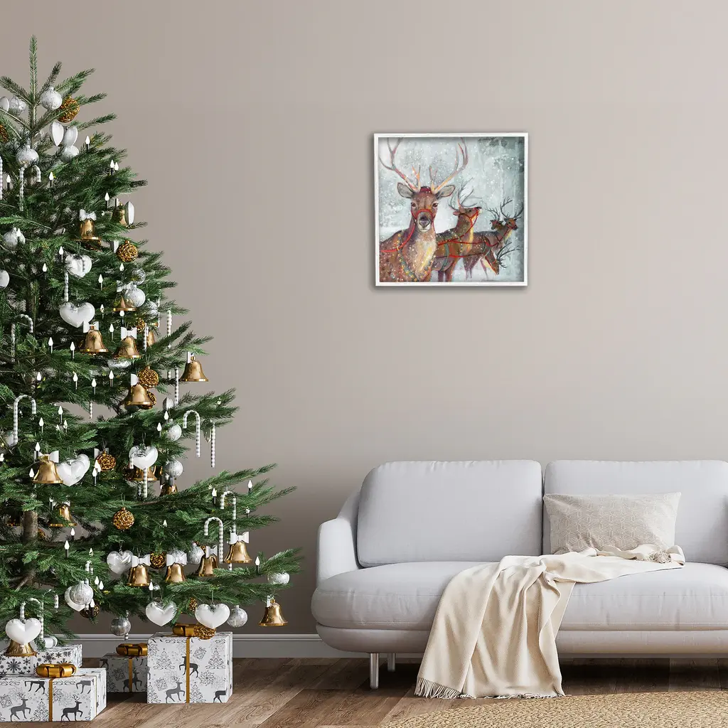 Add dimension to any room with our textured Framed Giclee Artwork. Our framed artwork is securely mounted into a 1.5-inch thick wood grain frame and ready to hang. Frames are available in three alluring styles: black, gray farmhouse and white. In addition, you should check out our oversized options if you want a statement piece. Stupell Wall Art is made in the USA.Features: Dimensions: 12 x 1.5 x 12 FramedFramed Giclee Sizes Include Standard: 12 x 1.5 x 12 Large: 17 x 1.5 x 17 Oversized: 24 x 1.5 x 24Wall Art is Ready to Hang - No Installation or Hardware Needed. For Easy Set Up Lean or Layer Artwork on Shelf or Against Wall.Our giclée prints are carefully mounted on a durable MDF backing, and then perfectly finished in a 1.5 inch thick woodgrain frame. Mounted frame colors include black, gray farmhouse and white. Made In USA.Artwork Relates To: Animal, Deer, Mammal, Wildlife, Painting, Nature, Snow, Winter, Holiday, ReindeerDesign by Ruane Manning