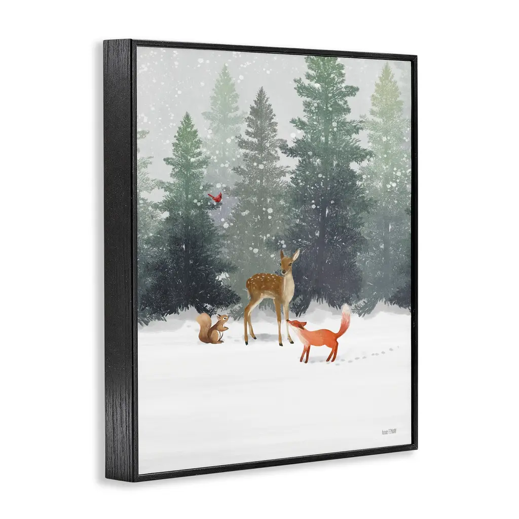 Stupell Winter Season Forest Animals Fox Deer Squirrel Framed Wall Art - Multi-Color - 11 X 14 - Black