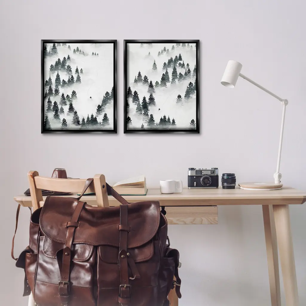 Elevate your home or office to the next level with Stupell Framed Floating Canvas Wall Art. Our premium hand-stretched canvas is mounted securely into a sturdy lightweight frame. The museum-style gap between the wrapped canvas and the box frame gives the illusion of floating artwork. Stupell Wall Art is made in the USA.Features: Dimensions: 2 Piece Set, Each Frame is 17 x 1.7 x 21Two Piece Floater Framed Canvas are available as 17x21 or 25x31 Panels. All Floater Frame Products have a 1.7" Depth.Wall Art is Ready to Hang with Hardware Free Hanging. No Installation required. For Easy Set Up Lean or Layer Artwork on Shelf or Against Wall. Artwork is Permently Fixed into the Frame.Our elevated 1.7" Thick Floating Frame is the perfect complement to our canvas style Wall Art. We use only the highest quality inks in house with industry leading printing solutions. Canvas is hand stretched over a durable wood foundation and then mounted securly into a Modern Box Frame. Made in the USA.Artwork Relates To: Woodland, Nature, Snow, Winter, Skiing, SportsDesign by Ziwei Li