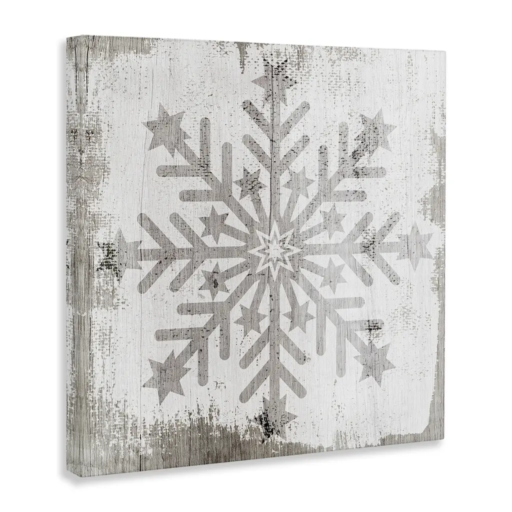 Proudly made in the USA, Our stretched canvas is created with the highest standards. We use only the highest quality inks and canvas on our in house Mimaki printers, and then hand cut and stretch each piece over a 1.5 inch thick wooden frame for hanging. The art comes ready to hang with no installation required.Features: Dimensions: 17 x 1.5 x 17 InchesStretched Canvas Sizes Include Standard: 17 x 1.5 x 17 Large: 24 x 1.5 x 24 X-Large: 30 x 1.5 x 30 Oversized: 36 x 1.5 x 36Wall Art is Ready to Hang - No Installation or Hardware Needed. For Easy Set Up Lean or Layer Artwork on Shelf or Against Wall.Our stretched canvas is created with the highest standards. We use only the highest quality inks and canvas on our in house Mimaki printers, and then hand cut and stretch each piece over a 1.5 inch thick wooden frame for hanging. Made In USA.Artwork Relates To: Snow, Snowflake, Nature, Winter, WeatheredDesign by Lil' Rue