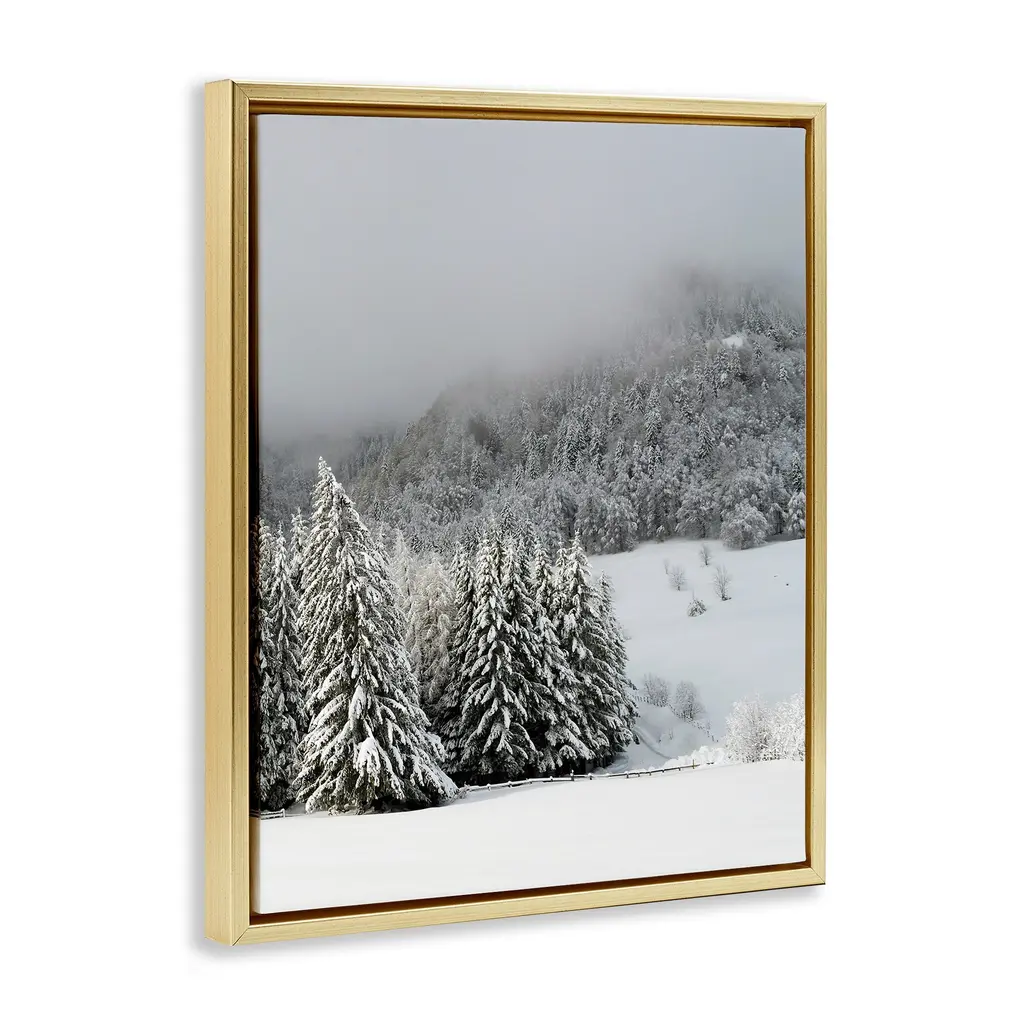 Elevate your home or office to the next level with Stupell Framed Floating Canvas Wall Art. Our premium hand-stretched canvas is mounted securely into a sturdy lightweight frame. The museum-style gap between the wrapped canvas and the box frame gives the illusion of floating artwork. Stupell Wall Art is made in the USA.Features: Dimensions: 17 x 1.7 x 21 Frame, 16 x 1.5 x 20 Canvas ArtFloating Frame Sizes Include Standard: 17 x 1.7 x 21 Oversized: 25 x 1.7 x 31Wall Art is Ready to Hang - No Installation or Hardware Needed. For Easy Set Up Lean or Layer Artwork on Shelf or Against Wall.Our elevated 1.7" Thick Floating Frame is the perfect complement to our canvas style Wall Art. We use only the highest quality inks in house with industry leading printing solutions. Canvas is hand stretched over a durable wood foundation and then mounted securly into a Modern Box Frame. Made in the USA.Artwork Relates To: Plant, Tree, Nature, Woodland, Weather, Pine, Snow, Conifer, Ice, WinterDesign by Lil' Rue