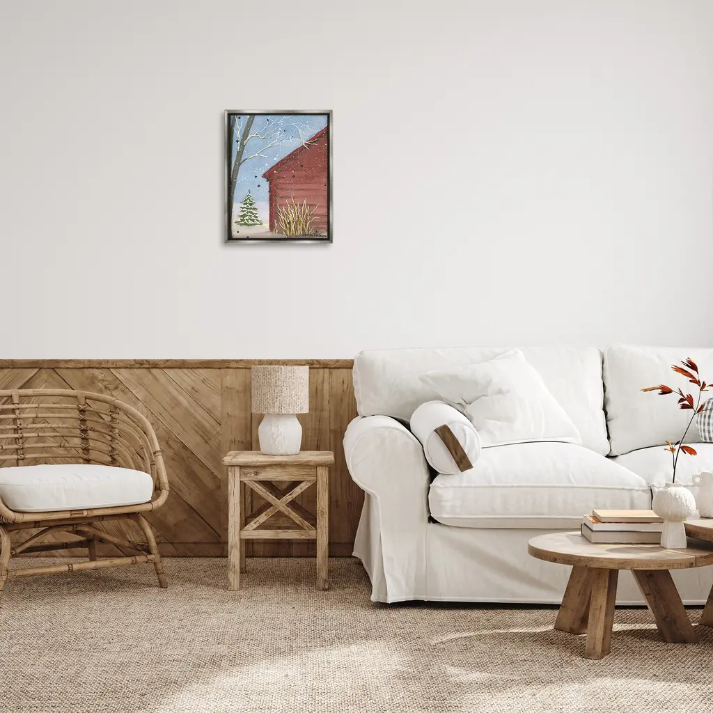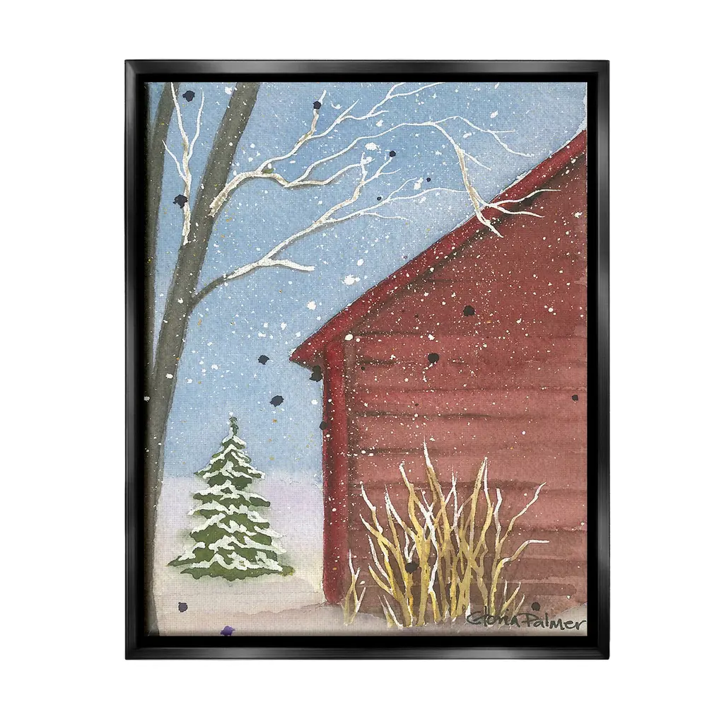 Elevate your home or office to the next level with Stupell Framed Floating Canvas Wall Art. Our premium hand-stretched canvas is mounted securely into a sturdy lightweight frame. The museum-style gap between the wrapped canvas and the box frame gives the illusion of floating artwork. Stupell Wall Art is made in the USA.Features: Dimensions: 17 x 1.7 x 21 Frame, 16 x 1.5 x 20 Canvas ArtFloating Frame Canvas Products are available in sizes 17"x21" and 25"x31". All Floating Frame Canvas Products have a 1.7" Depth.Wall Art is Ready to Hang with Hardware Free Hanging. No Installation required. For Easy Set Up Lean or Layer Artwork on Shelf or Against Wall. Artwork is Permently Fixed into the Frame.Our elevated 1.7" Thick Floating Frame is the perfect complement to our canvas style Wall Art. We use only the highest quality inks in house with industry leading printing solutions. Canvas is hand stretched over a durable wood foundation and then mounted securly into a Modern Box Frame. Made in the USA.Artwork Relates To: Plant, Tree, Nature, Christmas, Countryside, Rural, Christmas Tree, Snow, House, Winter, Cabin, Lodge, Woodland, PaintingDesign by Gloria Palmer