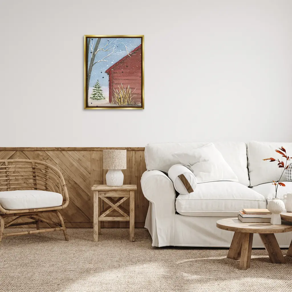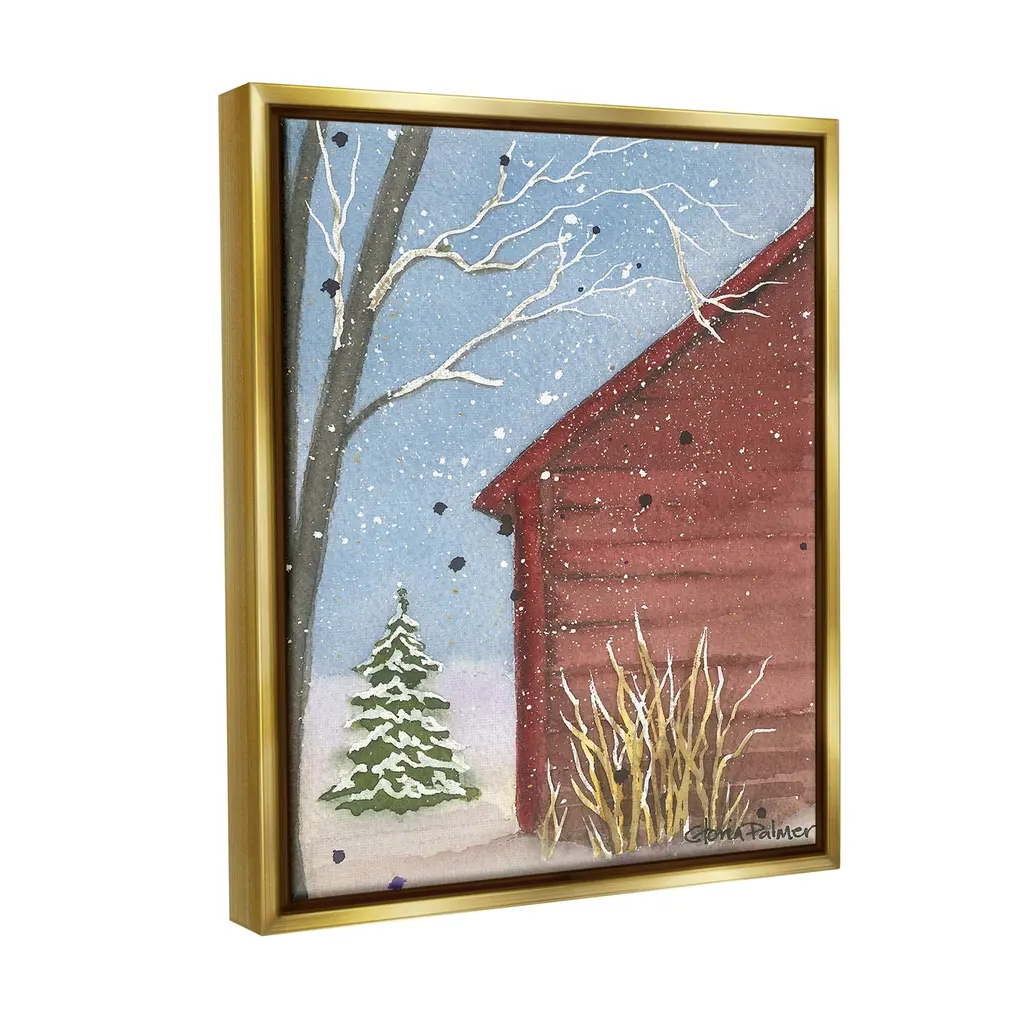Elevate your home or office to the next level with Stupell Framed Floating Canvas Wall Art. Our premium hand-stretched canvas is mounted securely into a sturdy lightweight frame. The museum-style gap between the wrapped canvas and the box frame gives the illusion of floating artwork. Stupell Wall Art is made in the USA.Features: Dimensions: 17 x 1.7 x 21 Frame, 16 x 1.5 x 20 Canvas ArtFloating Frame Canvas Products are available in sizes 17"x21" and 25"x31". All Floating Frame Canvas Products have a 1.7" Depth.Wall Art is Ready to Hang with Hardware Free Hanging. No Installation required. For Easy Set Up Lean or Layer Artwork on Shelf or Against Wall. Artwork is Permently Fixed into the Frame.Our elevated 1.7" Thick Floating Frame is the perfect complement to our canvas style Wall Art. We use only the highest quality inks in house with industry leading printing solutions. Canvas is hand stretched over a durable wood foundation and then mounted securly into a Modern Box Frame. Made in the USA.Artwork Relates To: Plant, Tree, Nature, Christmas, Countryside, Rural, Christmas Tree, Snow, House, Winter, Cabin, Lodge, Woodland, PaintingDesign by Gloria Palmer