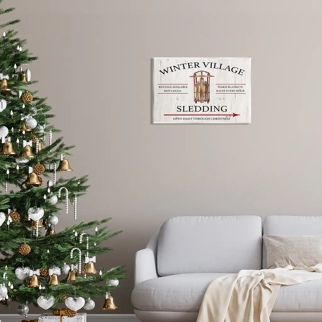 Our wall plaques start as high-quality lithograph prints mounted on durable 0.5-inch thick MDF wood. Each piece is hand finished and comes with a fresh layer of white foil on the sides to give it a crisp, clean look. Plaques arrive ready to hang without installation and come with removable plastic corners to keep them from damage in transit. Wall Art is made in the USA.Features: Dimensions: 15 x 0.5 x 10 InchesWall Plaque Sizes Include Standard: 15 x 0.5 x 10 Oversized: 19 x 0.5 x 13Wall Art is Ready to Hang with Hardware Free Hanging. No installation required. For Easy Set Up Lean or Layer Artwork on Shelf or Against Wall.All of our wall plaques start off as high quality lithograph prints that are then mounted on durable 0.5 inch thick MDF wood. Each piece is hand finished and comes with a fresh layer of foil on the sides to give it a crisp clean look. Made In USA.Artwork Relates To: Christmas, Holiday, Sled, Vintage, Rustic, Winter, Winter Village Sledding, SignDesign by Conrad Knutsen