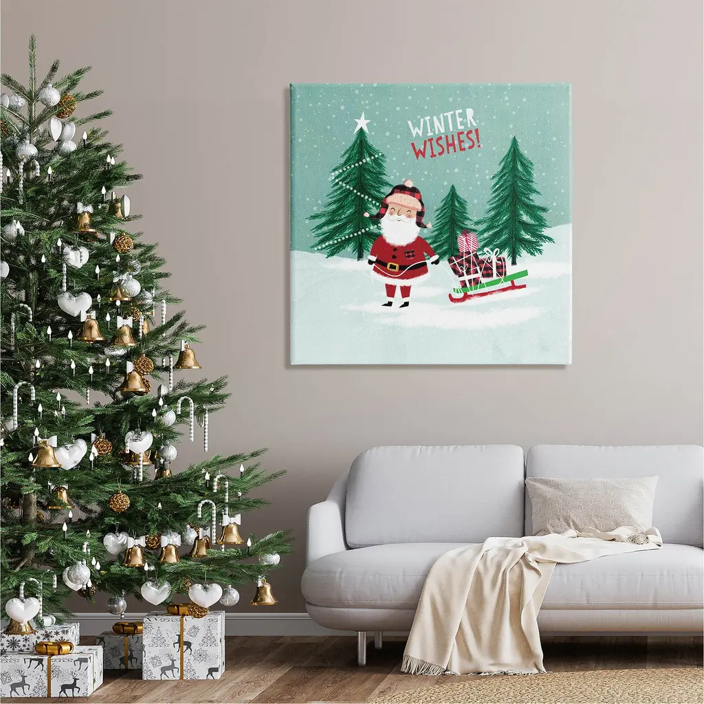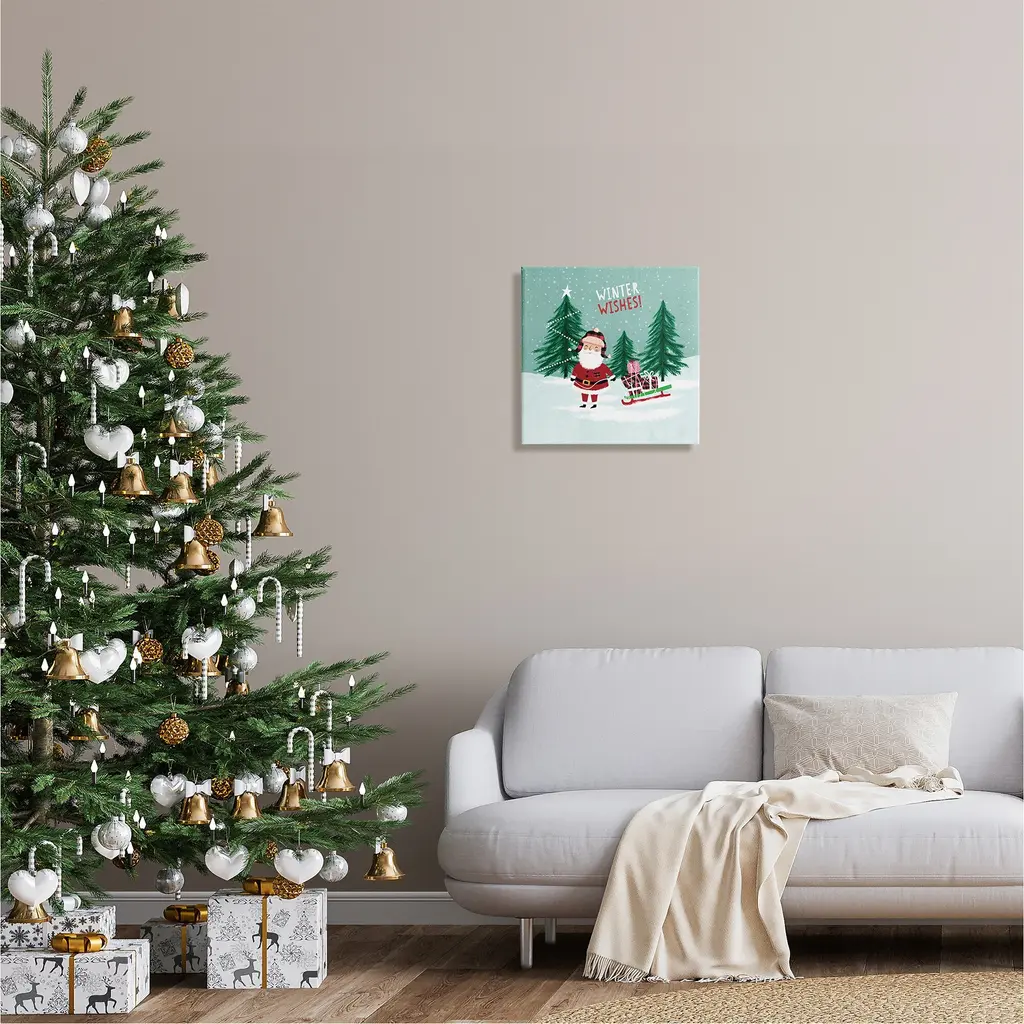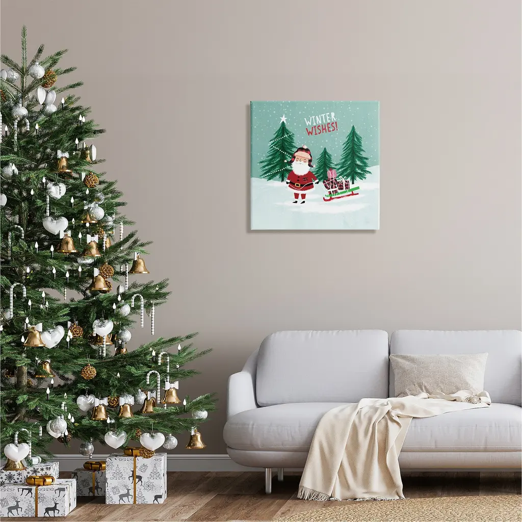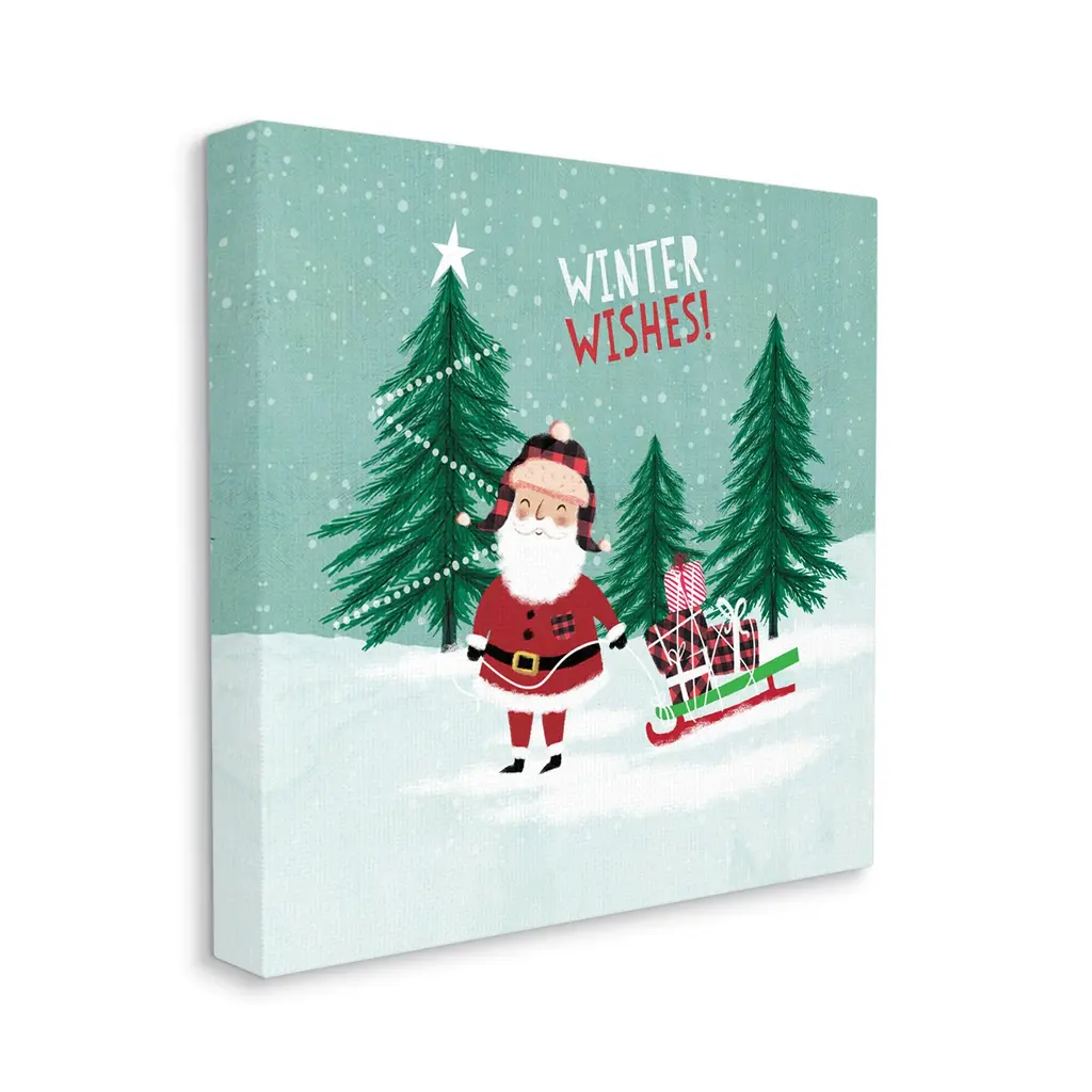We create our stretched canvas to the highest standards. Using only the highest quality inks and canvas on Mimaki printers, we hand-cut and stretch each piece over a 1.5-inch thick wooden frame for hanging. As a result, the art comes ready to hang on the sturdy ledge with no installation required. Stupell Wall Art is made in the USA.Features: Dimensions: 17 x 1.5 x 17 InchesStretched Canvas Sizes Include Standard: 17 x 1.5 x 17 Large: 24 x 1.5 x 24 X-Large: 30 x 1.5 x 30 Oversized: 36 x 1.5 x 36Wall Art is Ready to Hang - No Installation or Hardware Needed. For Easy Set Up Lean or Layer Artwork on Shelf or Against Wall.Our stretched canvas is created with the highest standards. We use only the highest quality inks and canvas on our in house Mimaki printers, and then hand cut and stretch each piece over a 1.5 inch thick wooden frame for hanging. Made In USA.Artwork Relates To: Tree, Nature, Snow, Christmas, Winter, Christmas Tree, Santa Claus, Sled, Winter WishesDesign by Pan Georgiou