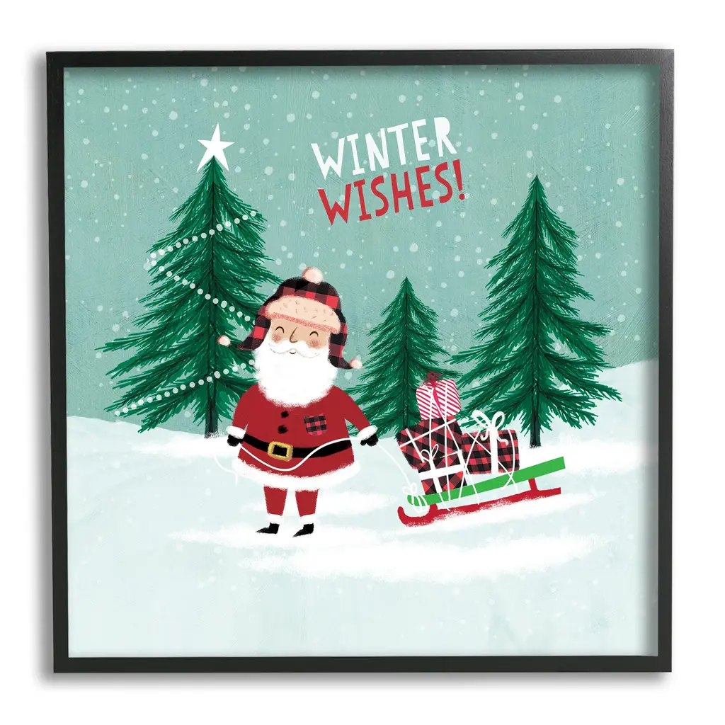 Add dimension to any room with our textured Framed Giclee Artwork. Our framed artwork is securely mounted into a 1.5-inch thick wood grain frame and ready to hang. Frames are available in three alluring styles: black, gray farmhouse and white. In addition, you should check out our oversized options if you want a statement piece. Stupell Wall Art is made in the USA.Features: Dimensions: 12 x 1.5 x 12 FramedFramed Giclee Sizes Include Standard: 12 x 1.5 x 12 Large: 17 x 1.5 x 17 Oversized: 24 x 1.5 x 24Wall Art is Ready to Hang - No Installation or Hardware Needed. For Easy Set Up Lean or Layer Artwork on Shelf or Against Wall.Our giclée prints are carefully mounted on a durable MDF backing, and then perfectly finished in a 1.5 inch thick woodgrain frame. Mounted frame colors include black, gray farmhouse and white. Made In USA.Artwork Relates To: Tree, Nature, Snow, Christmas, Winter, Christmas Tree, Santa Claus, Sled, Winter WishesDesign by Pan Georgiou
