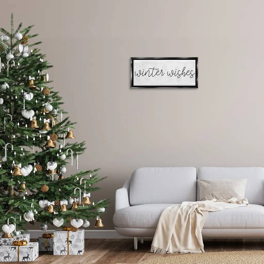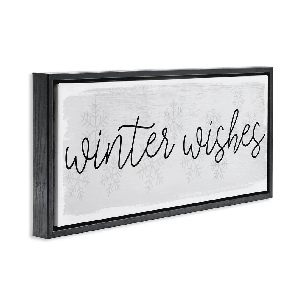 Stupell Winter Wishes Sentiment Framed Floater Canvas Wall Art Design By Daphne Polselli - 25 X 11 - Black