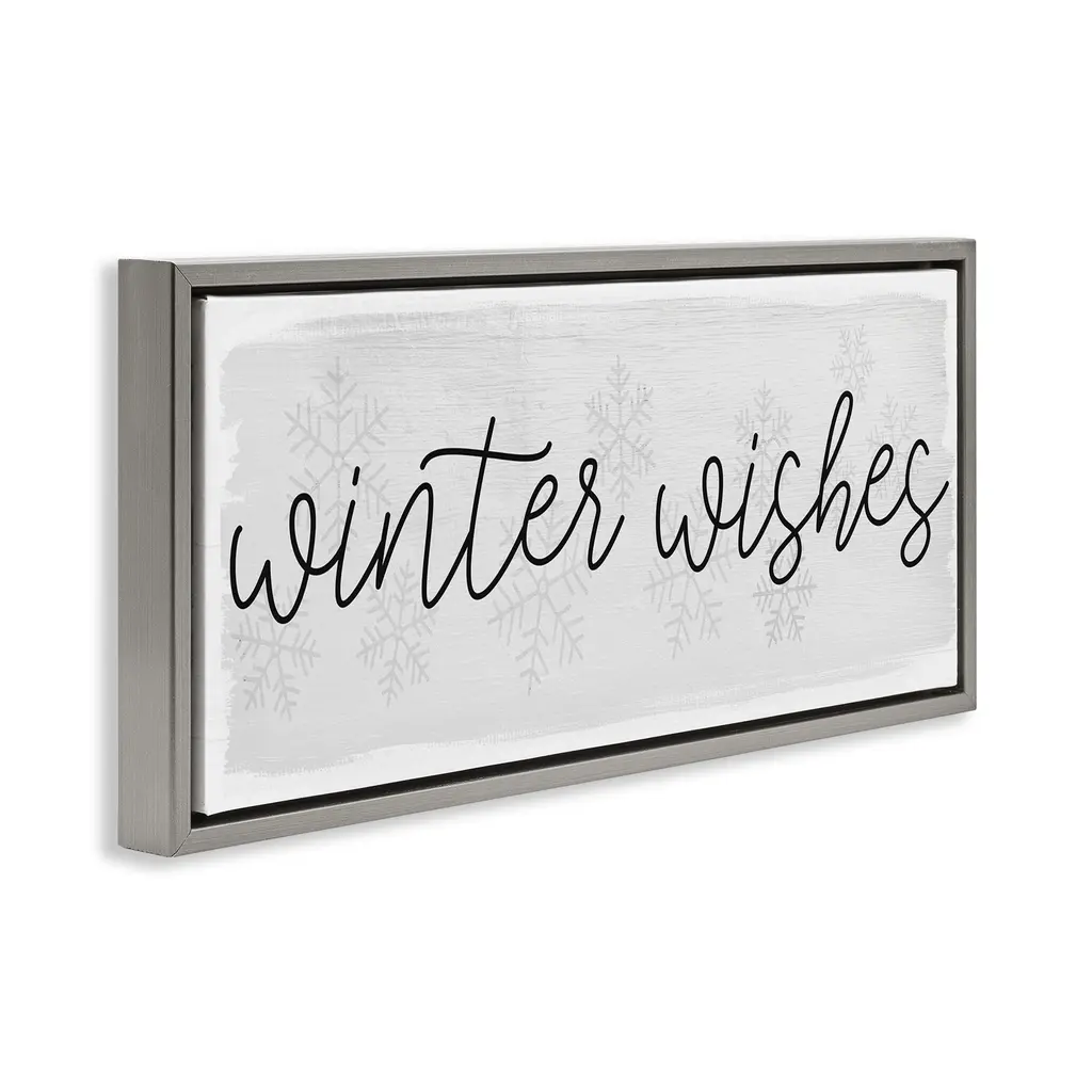 Stupell Winter Wishes Sentiment Framed Floater Canvas Wall Art Design By Daphne Polselli - 31 X 14 - Grey
