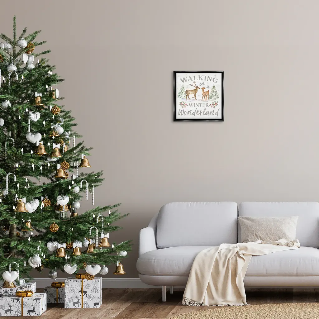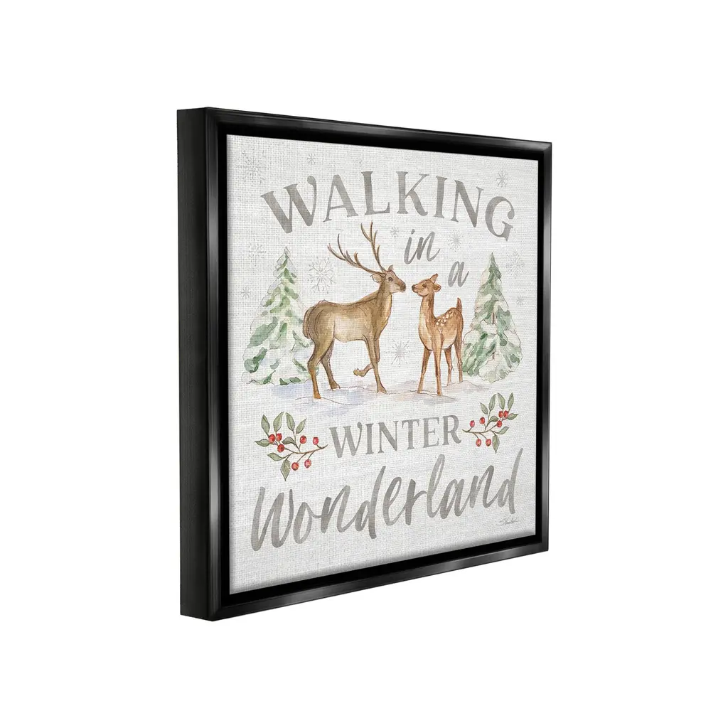 Elevate your home or office to the next level with Stupell Framed Floating Canvas Wall Art. Our premium hand-stretched canvas is mounted securely into a sturdy lightweight frame. The museum-style gap between the wrapped canvas and the box frame gives the illusion of floating artwork. Stupell Wall Art is made in the USA.Features: Dimensions: 18 x 1.7 x 18 Frame, 17 x 1.5 x 17 Canvas ArtFloating Frame Canvas Products are available in sizes 18"x18" and 25"x25". All Floating Frame Canvas Products have a 1.7" Depth.Wall Art is Ready to Hang with Hardware Free Hanging. No Installation required. For Easy Set Up Lean or Layer Artwork on Shelf or Against Wall. Artwork is Permently Fixed into the Frame.Our elevated 1.7" Thick Floating Frame is the perfect complement to our canvas style Wall Art. We use only the highest quality inks in house with industry leading printing solutions. Canvas is hand stretched over a durable wood foundation and then mounted securly into a Modern Box Frame. Made in the USA.Artwork Relates To: Animal, Deer, Fawn, Mammal, Wildlife, Antler, Holiday, Seasonal, Winter, Snow, Walking in a Winter WonderlandDesign by Silvia Vassileva