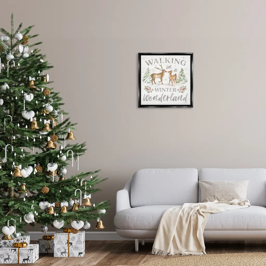 Elevate your home or office to the next level with Stupell Framed Floating Canvas Wall Art. Our premium hand-stretched canvas is mounted securely into a sturdy lightweight frame. The museum-style gap between the wrapped canvas and the box frame gives the illusion of floating artwork. Stupell Wall Art is made in the USA.Features: Dimensions: 18 x 1.7 x 18 Frame, 17 x 1.5 x 17 Canvas ArtFloating Frame Canvas Products are available in sizes 18"x18" and 25"x25". All Floating Frame Canvas Products have a 1.7" Depth.Wall Art is Ready to Hang with Hardware Free Hanging. No Installation required. For Easy Set Up Lean or Layer Artwork on Shelf or Against Wall. Artwork is Permently Fixed into the Frame.Our elevated 1.7" Thick Floating Frame is the perfect complement to our canvas style Wall Art. We use only the highest quality inks in house with industry leading printing solutions. Canvas is hand stretched over a durable wood foundation and then mounted securly into a Modern Box Frame. Made in the USA.Artwork Relates To: Animal, Deer, Fawn, Mammal, Wildlife, Antler, Holiday, Seasonal, Winter, Snow, Walking in a Winter WonderlandDesign by Silvia Vassileva