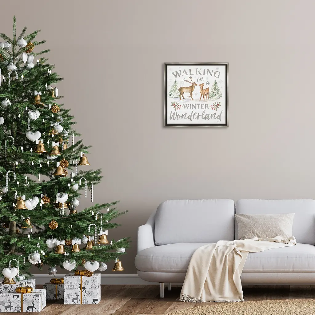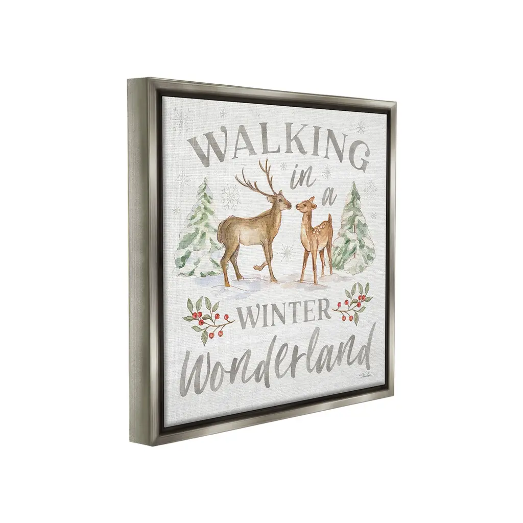 Elevate your home or office to the next level with Stupell Framed Floating Canvas Wall Art. Our premium hand-stretched canvas is mounted securely into a sturdy lightweight frame. The museum-style gap between the wrapped canvas and the box frame gives the illusion of floating artwork. Stupell Wall Art is made in the USA.Features: Dimensions: 18 x 1.7 x 18 Frame, 17 x 1.5 x 17 Canvas ArtFloating Frame Canvas Products are available in sizes 18"x18" and 25"x25". All Floating Frame Canvas Products have a 1.7" Depth.Wall Art is Ready to Hang with Hardware Free Hanging. No Installation required. For Easy Set Up Lean or Layer Artwork on Shelf or Against Wall. Artwork is Permently Fixed into the Frame.Our elevated 1.7" Thick Floating Frame is the perfect complement to our canvas style Wall Art. We use only the highest quality inks in house with industry leading printing solutions. Canvas is hand stretched over a durable wood foundation and then mounted securly into a Modern Box Frame. Made in the USA.Artwork Relates To: Animal, Deer, Fawn, Mammal, Wildlife, Antler, Holiday, Seasonal, Winter, Snow, Walking in a Winter WonderlandDesign by Silvia Vassileva