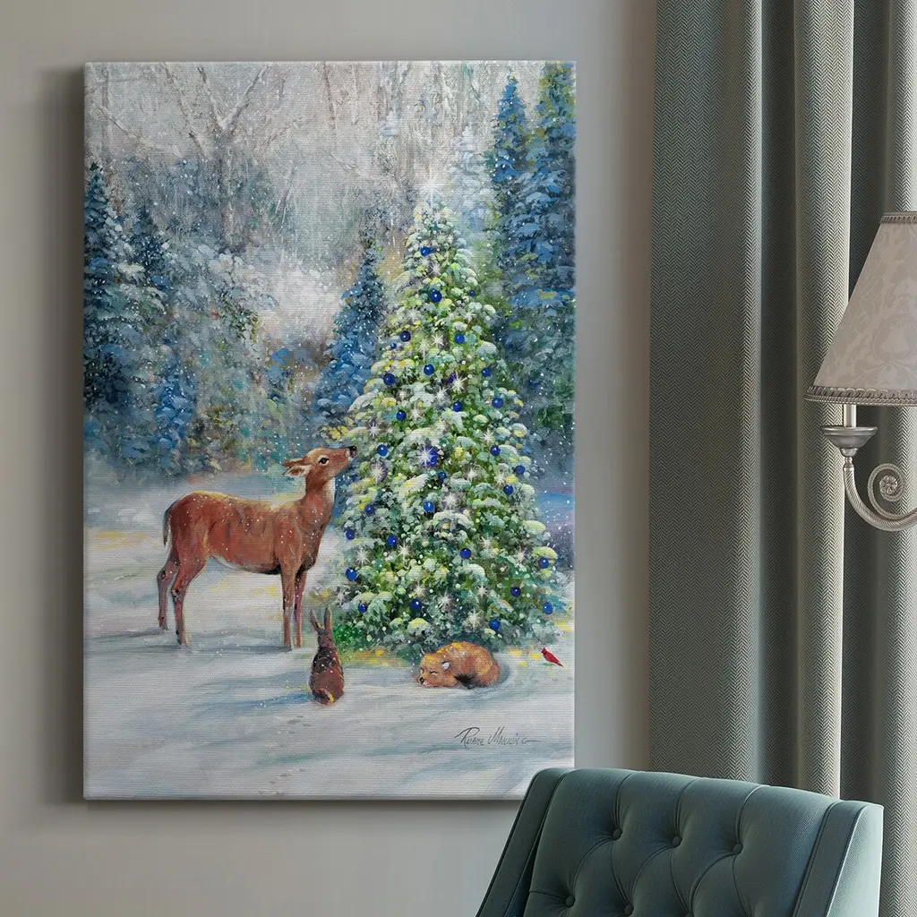 We create our stretched canvas to the highest standards. Using only the highest quality inks and canvas on Mimaki printers, we hand-cut and stretch each piece over a 1.5-inch thick wooden frame for hanging. As a result, the art comes ready to hang on the sturdy ledge with no installation required. Stupell Wall Art is made in the USA.Features: Dimensions: 16 x 1.5 x 20 InchesStretched Canvas Sizes Include Standard: 16 x 1.5 x 20 Large: 20 x 1.5 x 30 X-Large: 30 x 1.5 x 40 Oversized: 36 x 1.5 x 48Wall Art is Ready to Hang - No Installation or Hardware Needed. For Easy Set Up Lean or Layer Artwork on Shelf or Against Wall.Our stretched canvas is created with the highest standards. We use only the highest quality inks and canvas on our in house Mimaki printers, and then hand cut and stretch each piece over a 1.5 inch thick wooden frame for hanging. Made In USA.Artwork Relates To: Tree, Animal, Deer, Mammal, Wildlife, Christmas, Bird, Christmas Tree, Deer, RabbitDesign by Ruane Manning