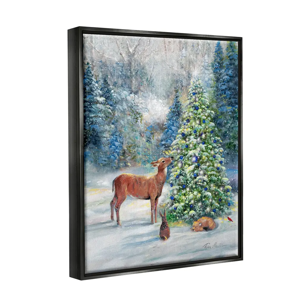 Elevate your home or office to the next level with Stupell Framed Floating Canvas Wall Art. Our premium hand-stretched canvas is mounted securely into a sturdy lightweight frame. The museum-style gap between the wrapped canvas and the box frame gives the illusion of floating artwork. Stupell Wall Art is made in the USA.Features: Dimensions: 17 x 1.7 x 21 Frame, 16 x 1.5 x 20 Canvas ArtFloating Frame Sizes Include Standard: 17 x 1.7 x 21 Oversized: 25 x 1.7 x 31Wall Art is Ready to Hang - No Installation or Hardware Needed. For Easy Set Up Lean or Layer Artwork on Shelf or Against Wall.Our elevated 1.7" Thick Floating Frame is the perfect complement to our canvas style Wall Art. We use only the highest quality inks in house with industry leading printing solutions. Canvas is hand stretched over a durable wood foundation and then mounted securly into a Modern Box Frame. Made in the USA.Artwork Relates To: Tree, Animal, Deer, Mammal, Wildlife, Christmas, Bird, Christmas Tree, Deer, RabbitDesign by Ruane Manning