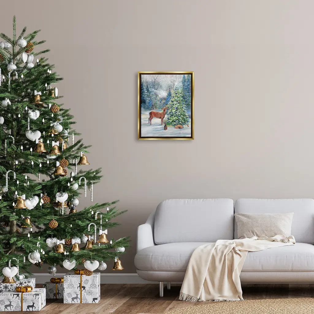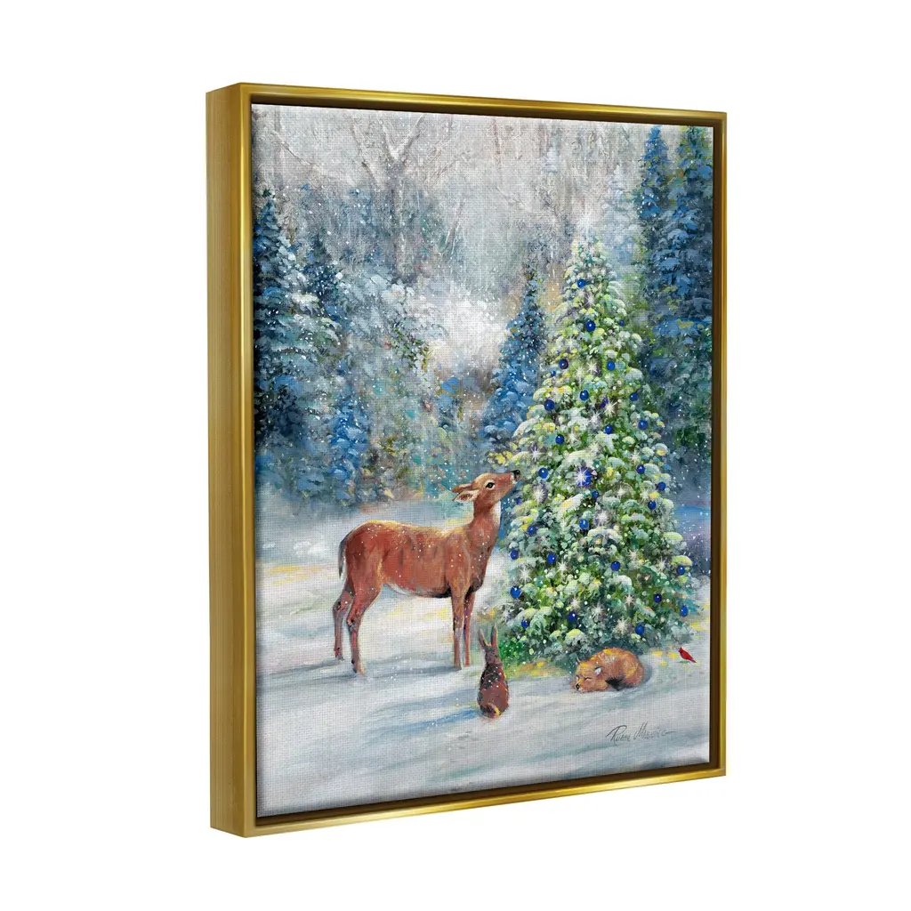Elevate your home or office to the next level with Stupell Framed Floating Canvas Wall Art. Our premium hand-stretched canvas is mounted securely into a sturdy lightweight frame. The museum-style gap between the wrapped canvas and the box frame gives the illusion of floating artwork. Stupell Wall Art is made in the USA.Features: Dimensions: 17 x 1.7 x 21 Frame, 16 x 1.5 x 20 Canvas ArtFloating Frame Sizes Include Standard: 17 x 1.7 x 21 Oversized: 25 x 1.7 x 31Wall Art is Ready to Hang - No Installation or Hardware Needed. For Easy Set Up Lean or Layer Artwork on Shelf or Against Wall.Our elevated 1.7" Thick Floating Frame is the perfect complement to our canvas style Wall Art. We use only the highest quality inks in house with industry leading printing solutions. Canvas is hand stretched over a durable wood foundation and then mounted securly into a Modern Box Frame. Made in the USA.Artwork Relates To: Tree, Animal, Deer, Mammal, Wildlife, Christmas, Bird, Christmas Tree, Deer, RabbitDesign by Ruane Manning