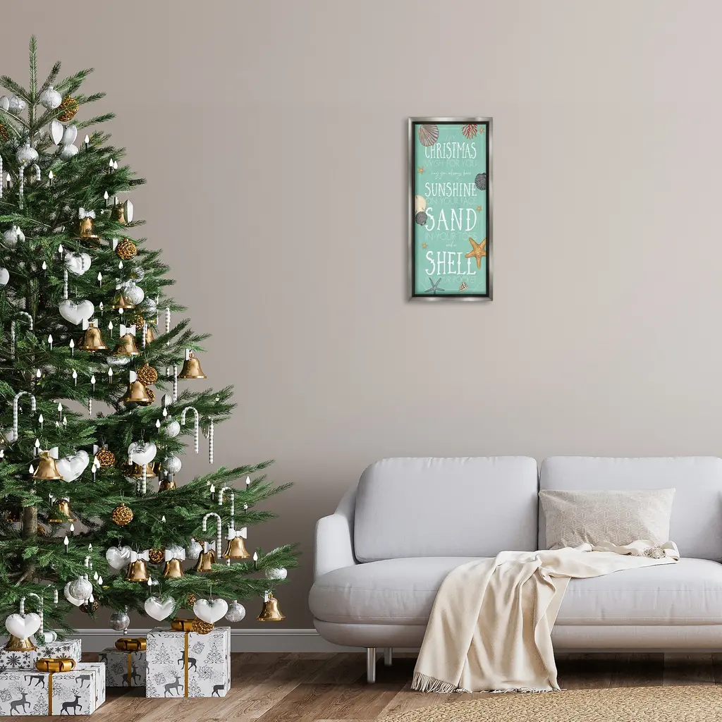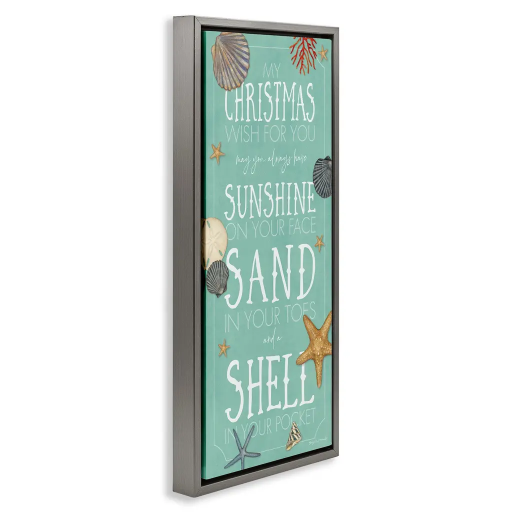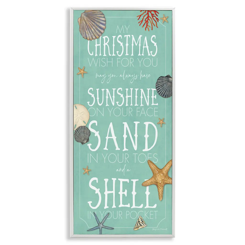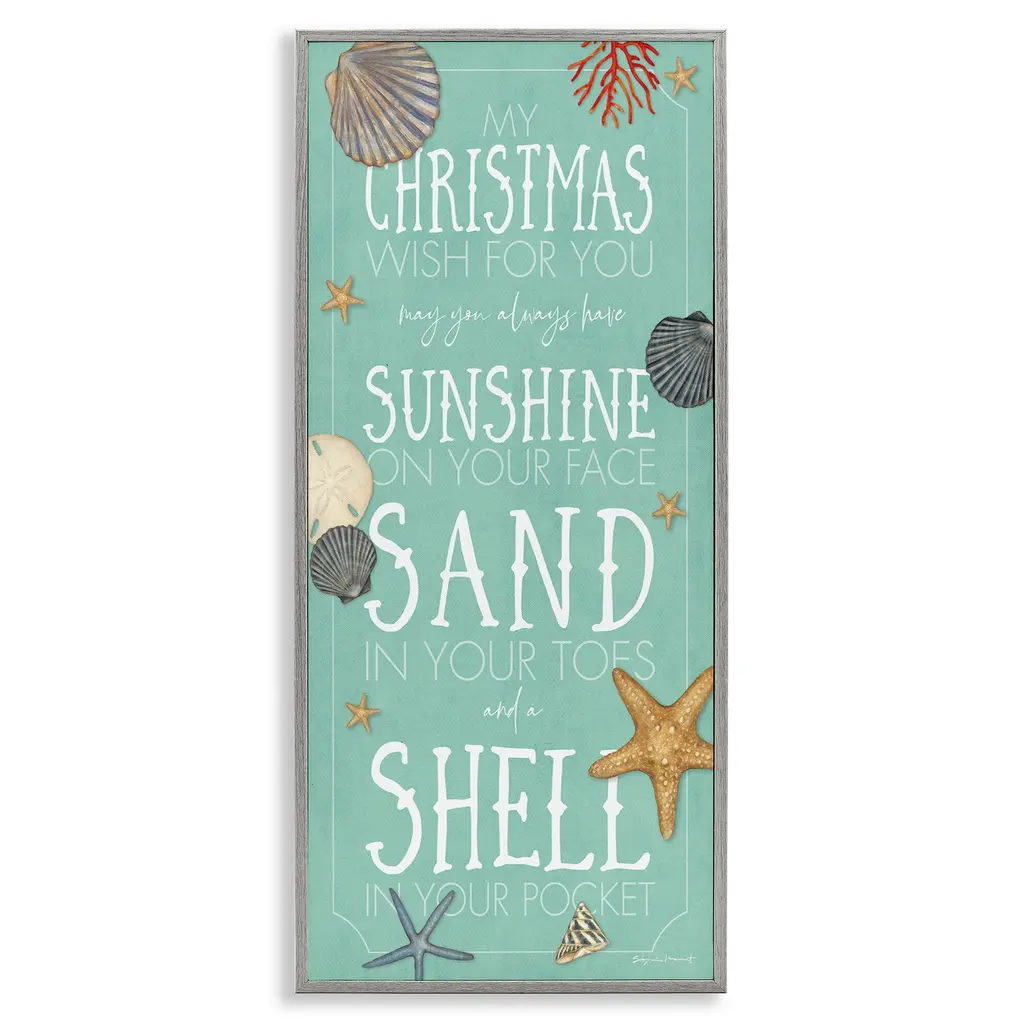 Elevate your home or office to the next level with Stupell Framed Floating Canvas Wall Art. Our premium hand-stretched canvas is mounted securely into a sturdy lightweight frame. The museum-style gap between the wrapped canvas and the box frame gives the illusion of floating artwork. Stupell Wall Art is made in the USA.Features: Dimensions: 11 x 1.7 x 25 Frame, 10 x 1.5 x 24 Canvas ArtFloating Frame Canvas Products are available in sizes 11"x25" and 14"x31". All Floating Frame Canvas Products have a 1.7" Depth.Wall Art is Ready to Hang with Hardware Free Hanging. No Installation required. For Easy Set Up Lean or Layer Artwork on Shelf or Against Wall. Artwork is Permently Fixed into the Frame.Our elevated 1.7" Thick Floating Frame is the perfect complement to our canvas style Wall Art. We use only the highest quality inks in house with industry leading printing solutions. Canvas is hand stretched over a durable wood foundation and then mounted securly into a Modern Box Frame. Made in the USA.Artwork Relates To: Holiday, Christmas, Coastal, Nautical, Seashell, PhraseDesign by Stephanie Workman Marrott