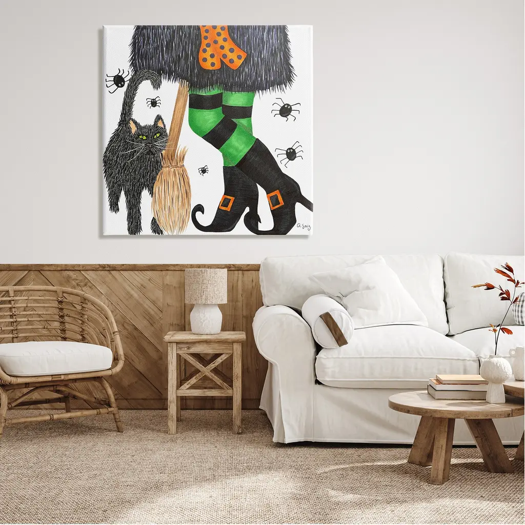 Stupell Witch Broom Halloween Black Cat Canvas Wall Art By Ale Saiz Studio - 17 X 17