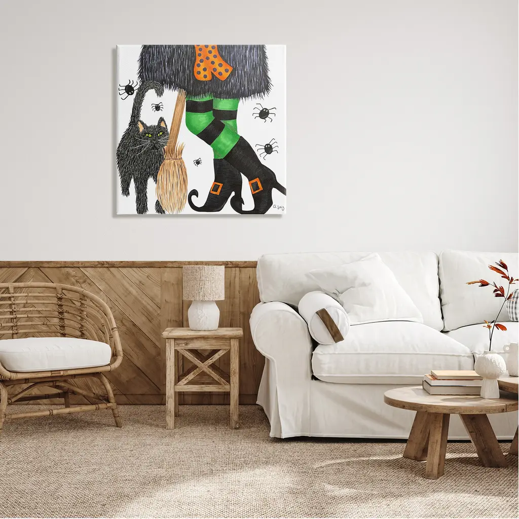 We create our stretched canvas to the highest standards. Using only the highest quality inks and canvas on Mimaki printers, we hand-cut and stretch each piece over a 1.5-inch thick wooden frame for hanging. As a result, the art comes ready to hang on the sturdy ledge with no installation required. Stupell Wall Art is made in the USA.Features: Dimensions: 17 x 1.5 x 17 InchesStretched Canvas Sizes Include Standard: 17 x 1.5 x 17 Large: 24 x 1.5 x 24 X-Large: 30 x 1.5 x 30 Oversized: 36 x 1.5 x 36Wall Art is Ready to Hang - No Installation or Hardware Needed. For Easy Set Up Lean or Layer Artwork on Shelf or Against Wall.Our stretched canvas is created with the highest standards. We use only the highest quality inks and canvas on our in house Mimaki printers, and then hand cut and stretch each piece over a 1.5 inch thick wooden frame for hanging. Made In USA.Artwork Relates To: Halloween, Nature, Witch, Black Cat, SpiderDesign by Ale Saiz Studio