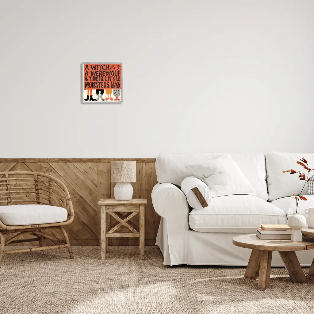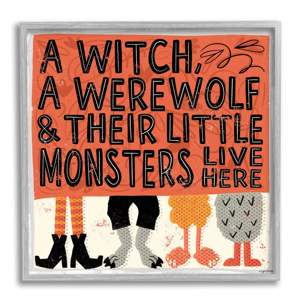 Stupell Witch Werewolf Little Monsters Live Here Halloween Family Framed Wall Art - Black - 12 X 12 - Grey