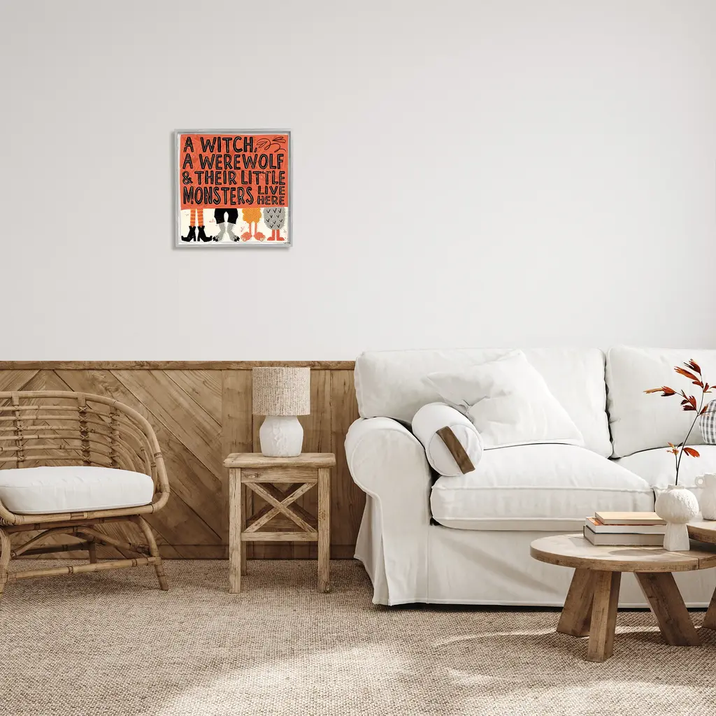 Stupell Witch Werewolf Little Monsters Live Here Halloween Family Framed Wall Art - Black - 17 X 17 - Grey