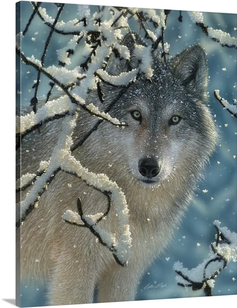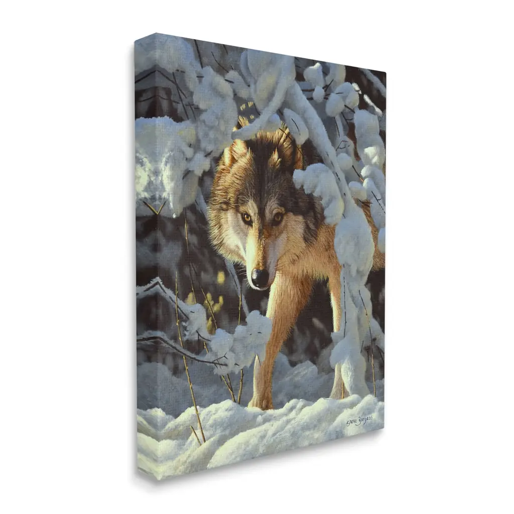 Stupell Wolf Among Snowy Branches Canvas Wall Art Design By Steve Burgess - 24 X 30