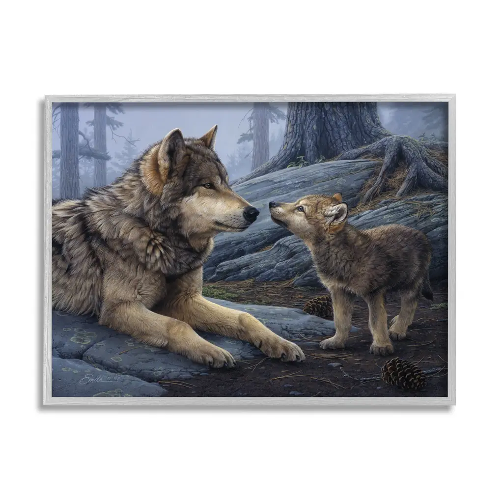 Stupell Wolf & Cub Woodland Forest Canvas Wall Art By Daniel Smith - 20 X 16