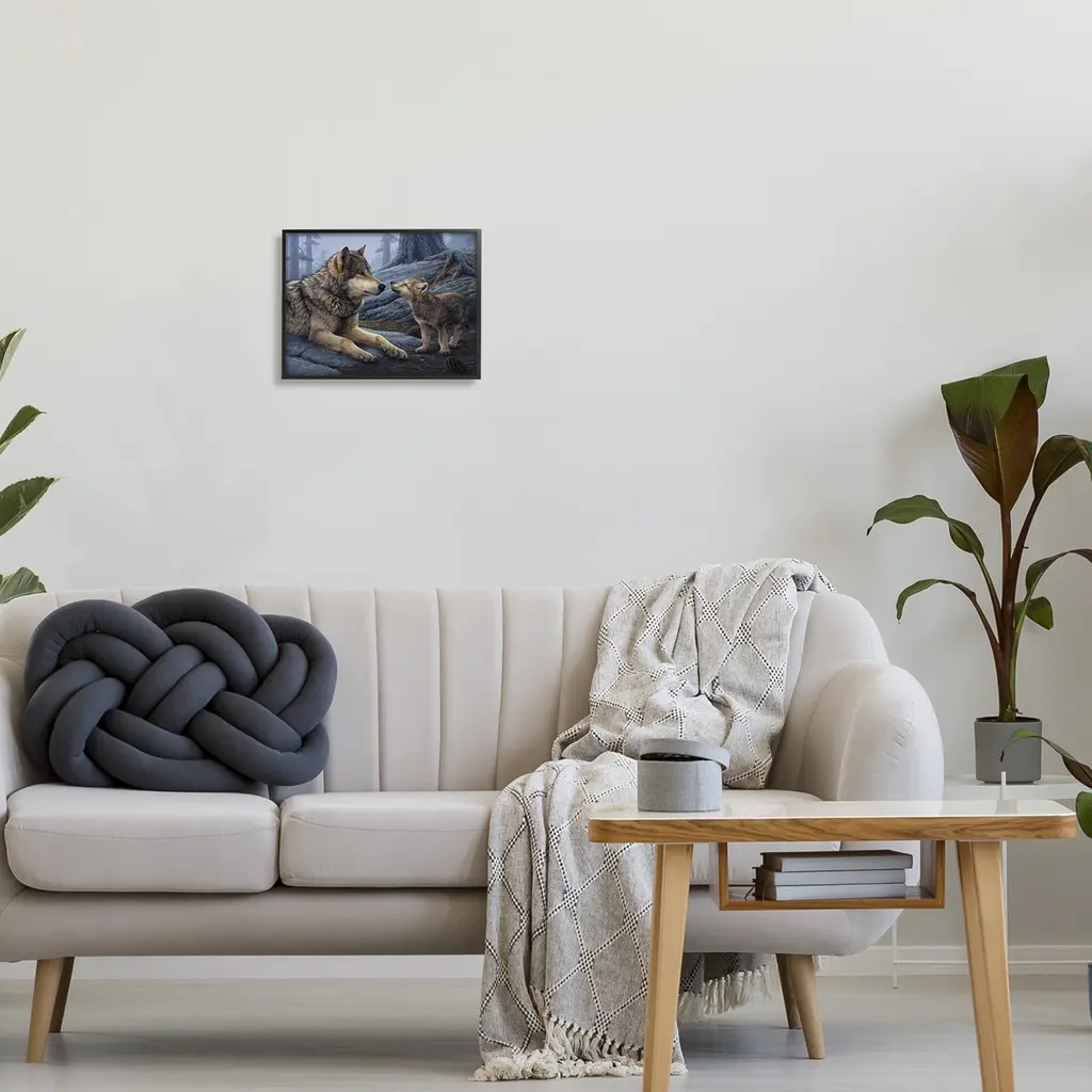 Add dimension to any room with our textured Framed Giclee Artwork. Our framed artwork is securely mounted into a 1.5-inch thick wood grain frame and ready to hang. Frames are available in three alluring styles: black, gray farmhouse and white. In addition, you should check out our oversized options if you want a statement piece. Stupell Wall Art is made in the USA.Features: Dimensions: 14 x 1.5 x 11 FramedFramed Giclee Sizes Include Standard: 14 x 1.5 x 11 Large: 20 x 1.5 x 16 Oversized: 30 x 1.5 x 24Wall Art is Ready to Hang - No Installation or Hardware Needed. For Easy Set Up Lean or Layer Artwork on Shelf or Against Wall.Our giclée prints are carefully mounted on a durable MDF backing, and then perfectly finished in a 1.5 inch thick woodgrain frame. Mounted frame colors include black, gray farmhouse and white. Made In USA.Artwork Relates To: Animal, Mammal, Wolf, Coyote, Canine, Cub, Nature, ForestDesign by Daniel Smith