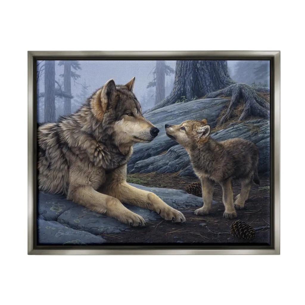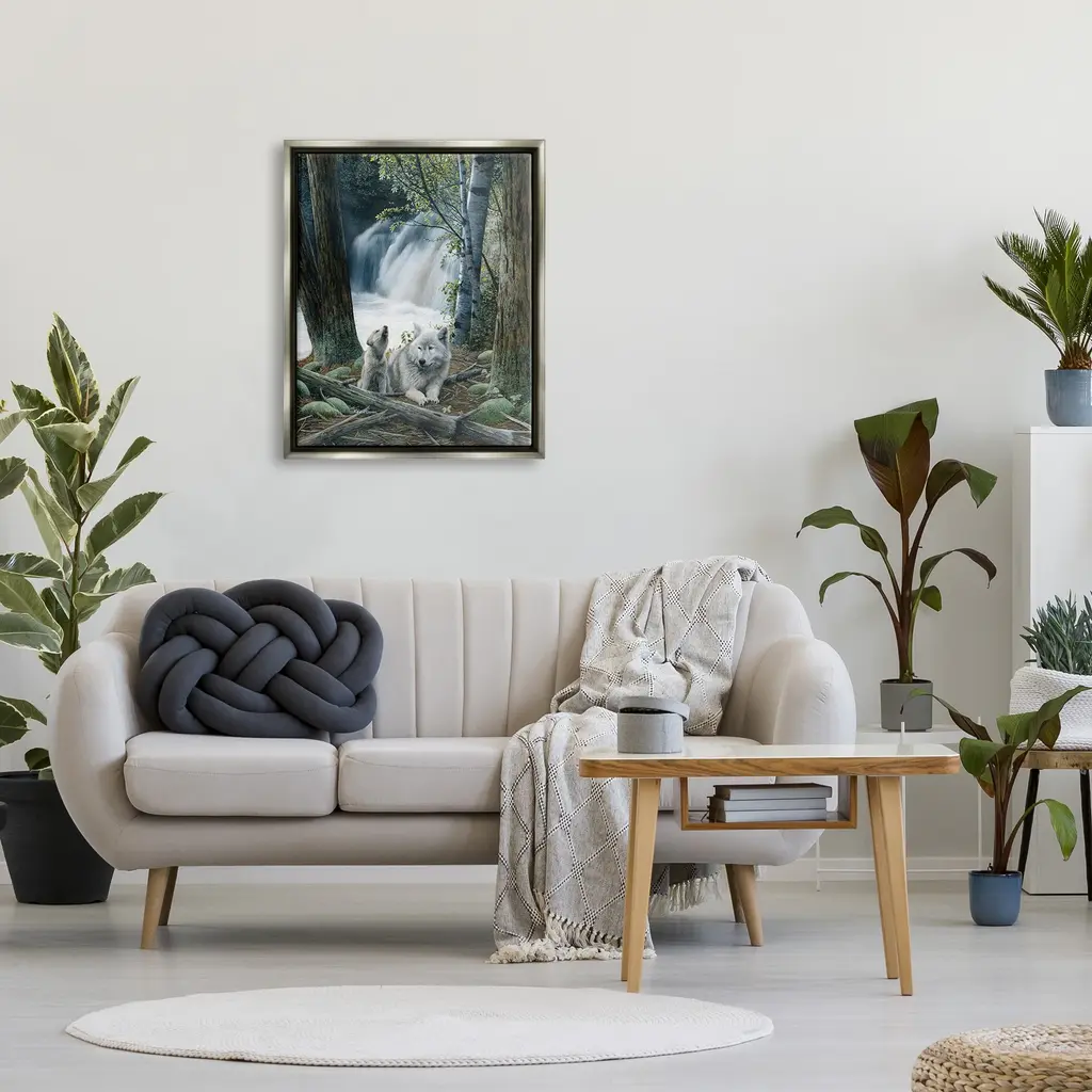 Stupell Wolves By Forest Waterfall Framed Floater Canvas Wall Art Design By Kevin Daniel - 25 X 31 - Grey