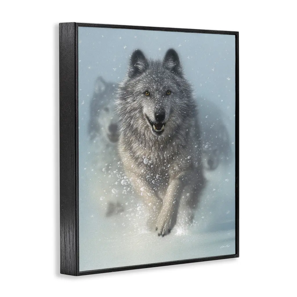 Stupell Wolves Running Through Snow Siberian Wild Winter Animals Framed Wall Art - 16 X 20 - Black