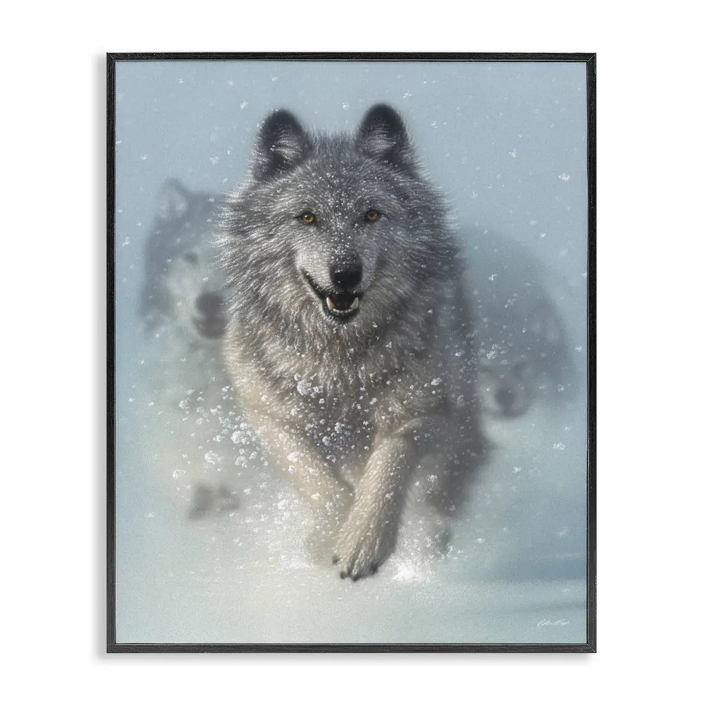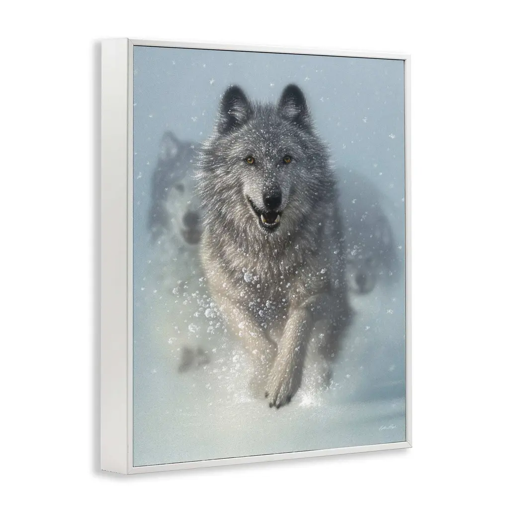 Stupell Wolves Running Through Snow Siberian Wild Winter Animals Framed Wall Art - 16 X 20 - White