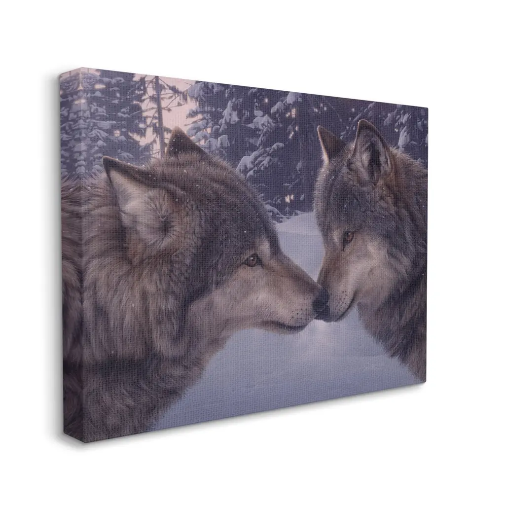 Stupell Wolves Touching Noses Nature Canvas Wall Art By Daniel Smith - 20 X 16