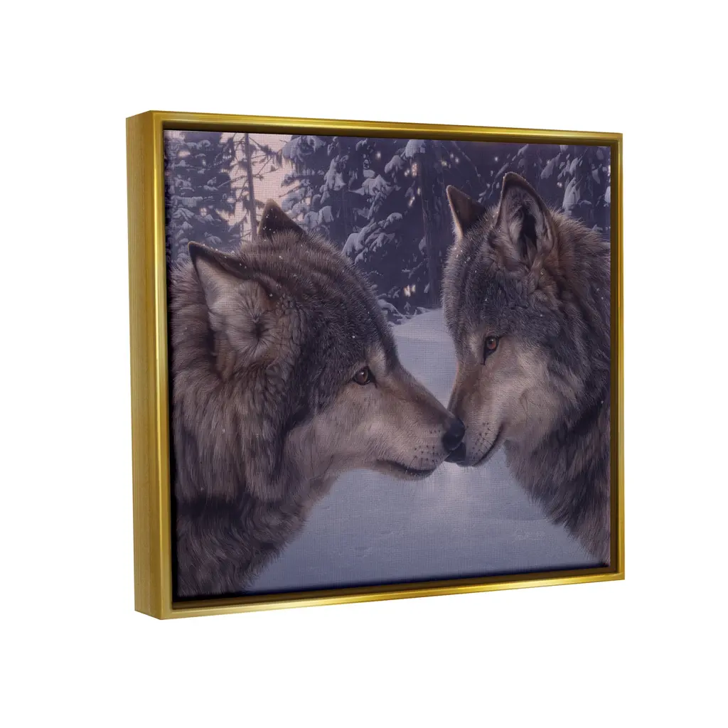 Stupell Wolves Touching Noses Nature Framed Floater Canvas Wall Art By Daniel Smith - 30 X 24 - Gold