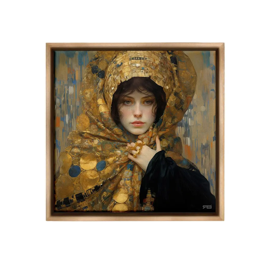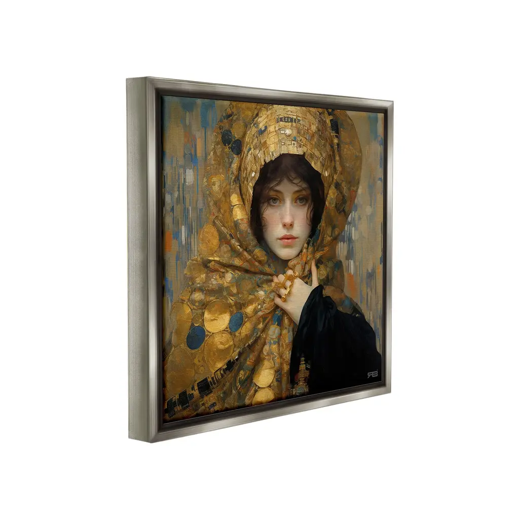 Stupell Woman In Patterned Gold Framed Floater Canvas Wall Art Design By Rb - 18 X 18 - Grey