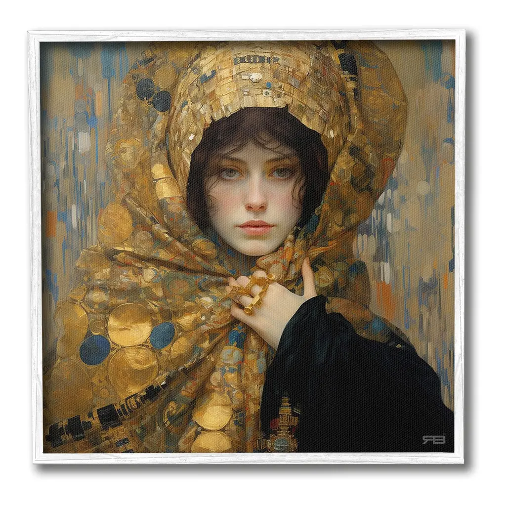 Stupell Woman In Patterned Gold Framed Giclee Art Design By Rb - 17 X 17 - Grey