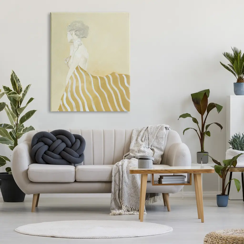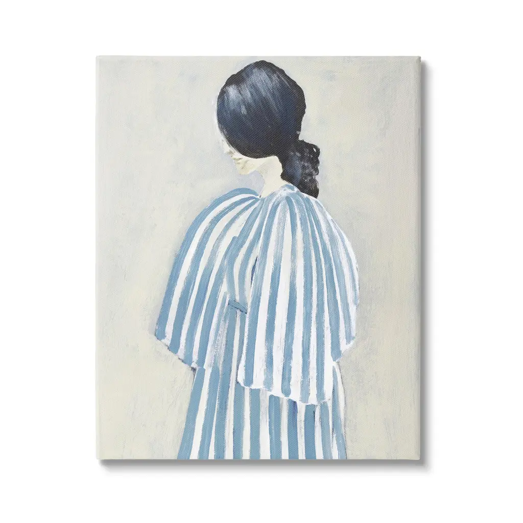 We create our stretched canvas to the highest standards. Using only the highest quality inks and canvas on Mimaki printers, we hand-cut and stretch each piece over a 1.5-inch thick wooden frame for hanging. As a result, the art comes ready to hang on the sturdy ledge with no installation required. Stupell Wall Art is made in the USA.Features: Dimensions: 16 x 1.5 x 20 InchesStretched Canvas Sizes Include Standard: 16 x 1.5 x 20 Large: 20 x 1.5 x 30 X-Large: 30 x 1.5 x 40 Oversized: 36 x 1.5 x 48Wall Art is Ready to Hang with Hardware Free Hanging. No installation required. For Easy Set Up Lean or Layer Artwork on Shelf or Against Wall.Our stretched canvas is created with the highest standards. We use only the highest quality inks and canvas on our in house Mimaki printers, and then hand cut and stretch each piece over a 1.5 inch thick wooden frame for hanging. Made In USA.Artwork Relates To: Fashion, Dress, Female, Person, Woman, Painting, Stripes, PatternDesign by Design Fabrikken