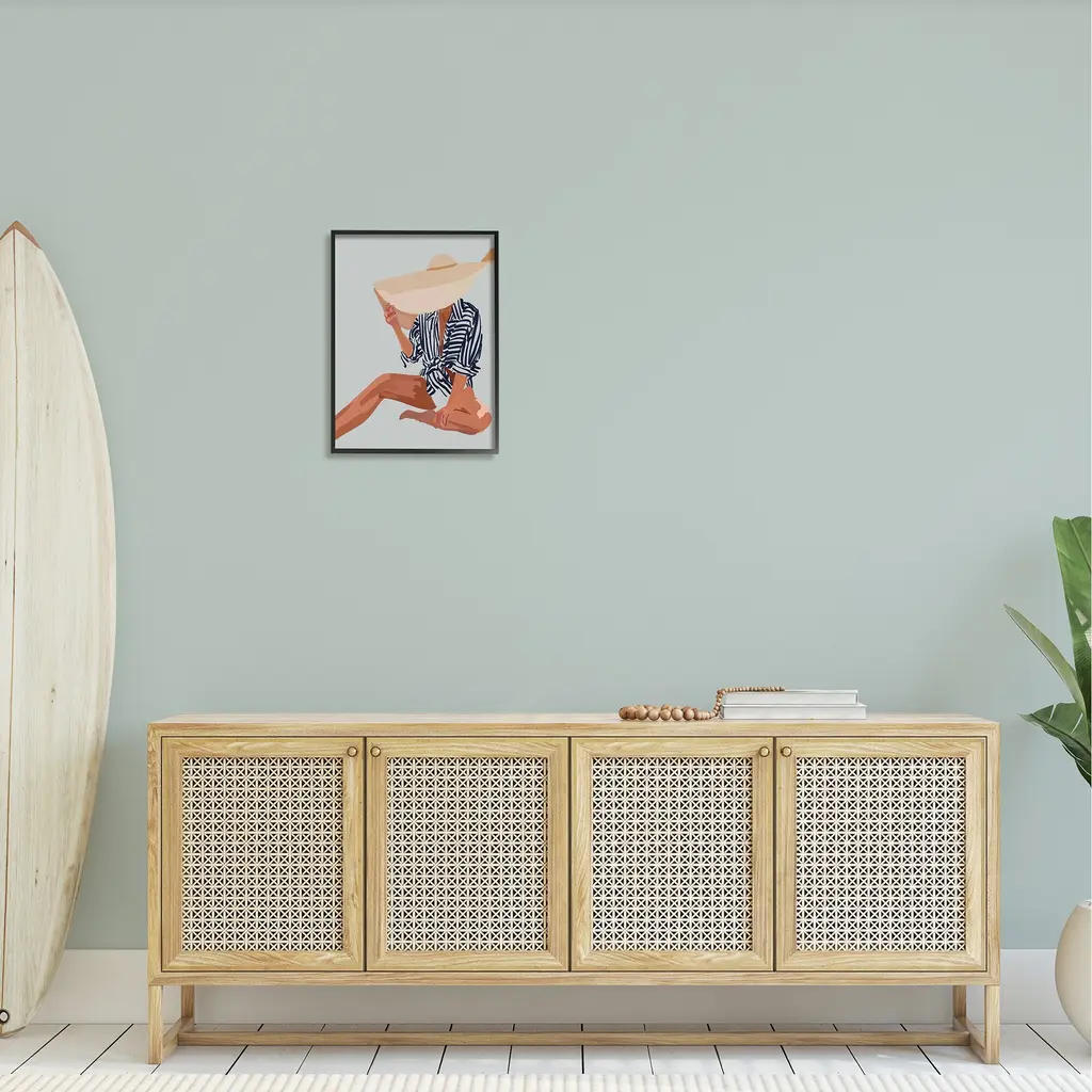 Stupell Woman Obscured By Sun Hat Summer Beach Portrait Framed Wall Art, Design By Amelia Noyes - 16 X 20 - Black