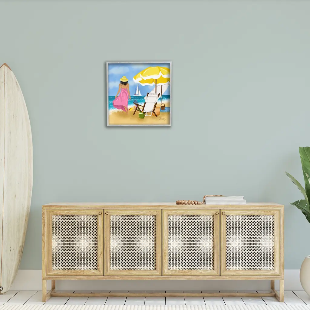 Add dimension to any room with our textured Framed Giclee Artwork. Our framed artwork is securely mounted into a 1.5-inch thick wood grain frame and ready to hang. Frames are available in three alluring styles: black, gray farmhouse and white. In addition, you should check out our oversized options if you want a statement piece. Stupell Wall Art is made in the USA.Features: Dimensions: 12 x 1.5 x 12 FramedFramed Giclee Product Sizes Include 12"x12", 17"x17", and 24"x24". Framed Giclee Products have a 1.5" Depth. Wall Art is Ready to Hang with Hardware Free Hanging. No installation required. For Easy Set Up Lean or Layer Artwork on Shelf or Against Wall.Our giclée prints are carefully mounted on a durable MDF backing, and then perfectly finished in a 1.5 inch thick woodgrain frame. Mounted frame colors include black, gray farmhouse and white. Made In USA.Artwork Relates To: Summer, Person, Chair, Sea, Water, Boat, Beach, Coast, Shoreline, Sailboat, Beach Chair, Cocktail, WomanDesign by Ale Saiz Studio