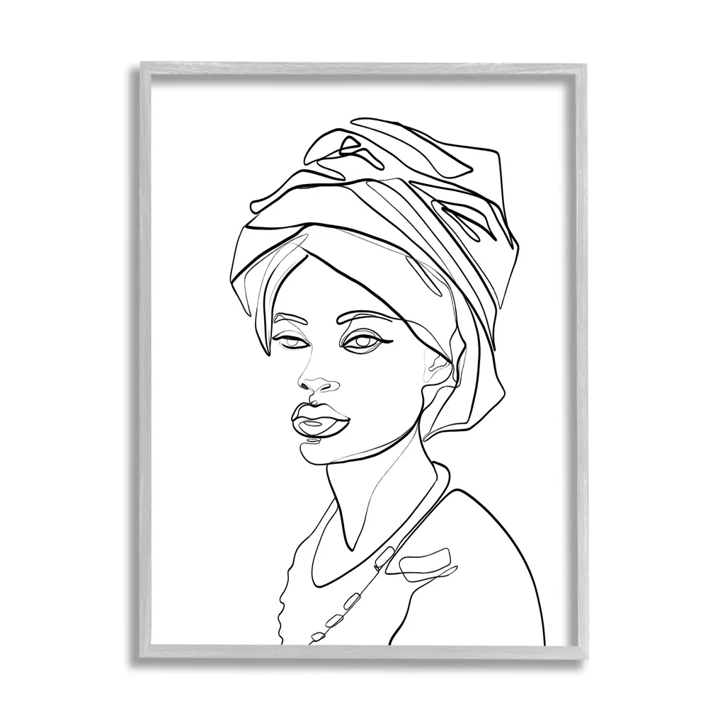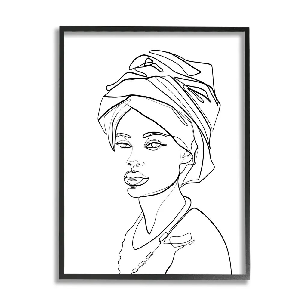 Stupell Woman Wearing Classic African Headwrap Fluid Line Abstraction Framed Wall Art - 16 X 20 - Black